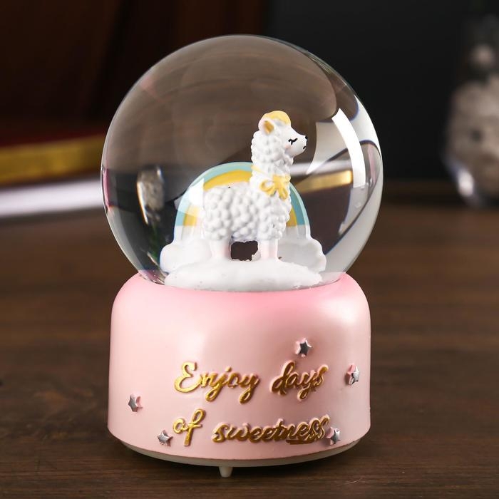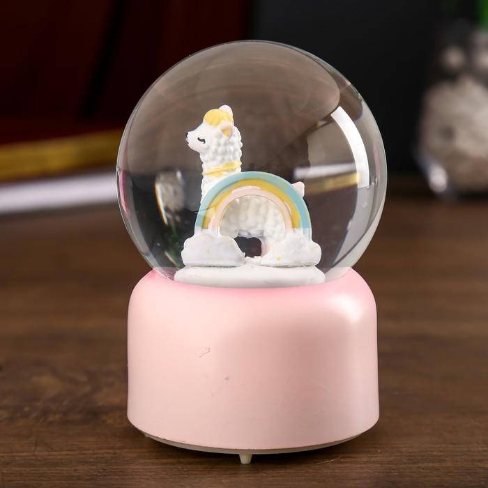 Сувенир полистоун водяной шар музыка, свет "Лама и радуга" МИКС 12,8х8х8 см
