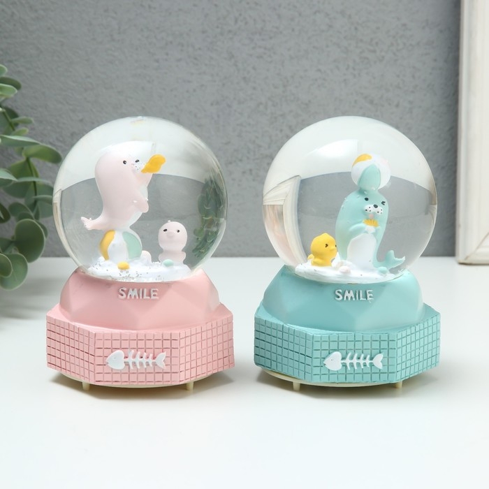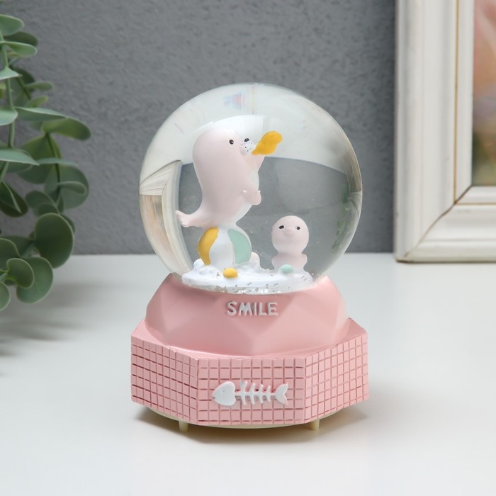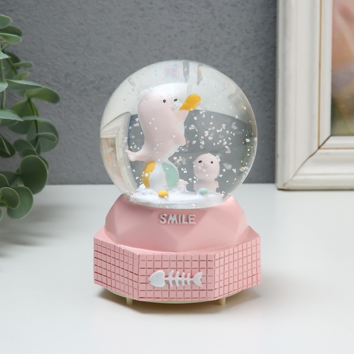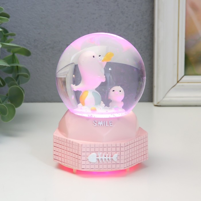Сувенир полистоун водяной шар музыка, свет "Морской львенок" МИКС 8х8х12 см