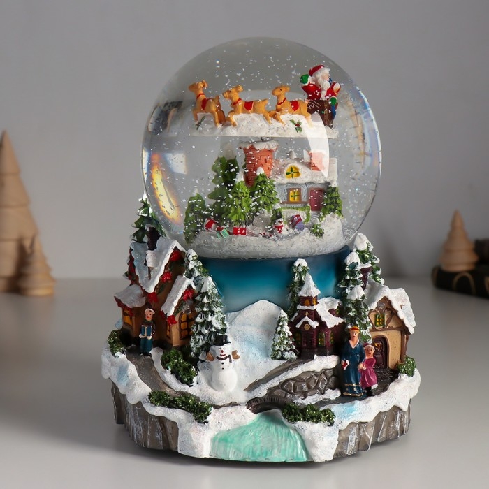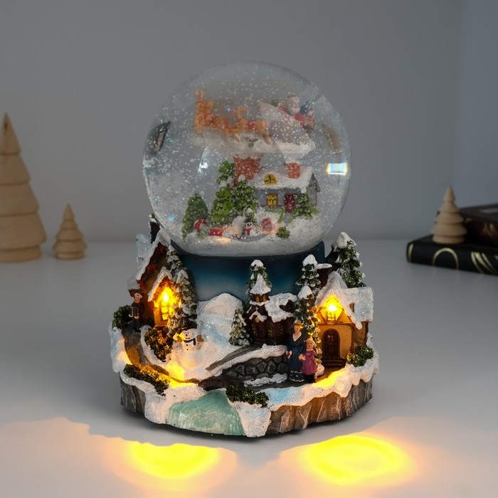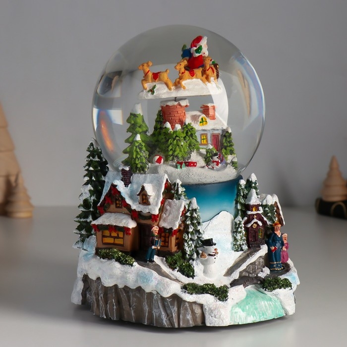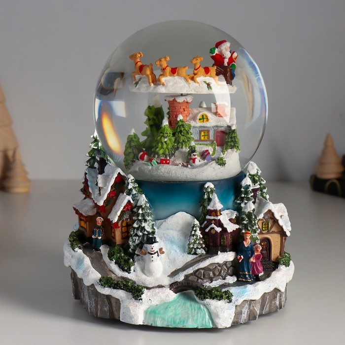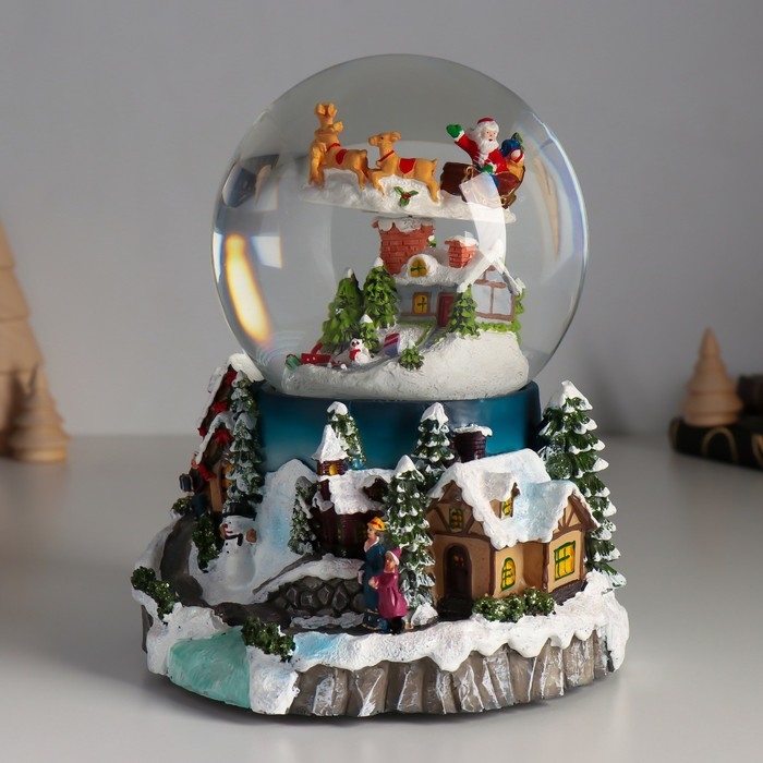 Сувенир полистоун водяной шар музыка, свет "Полёт Мороза" крутится d=12 см 16х15,5х19,5 см 1033444