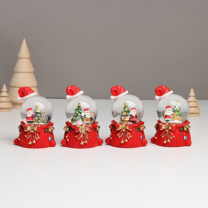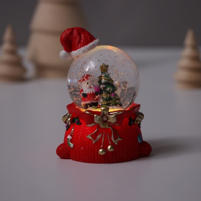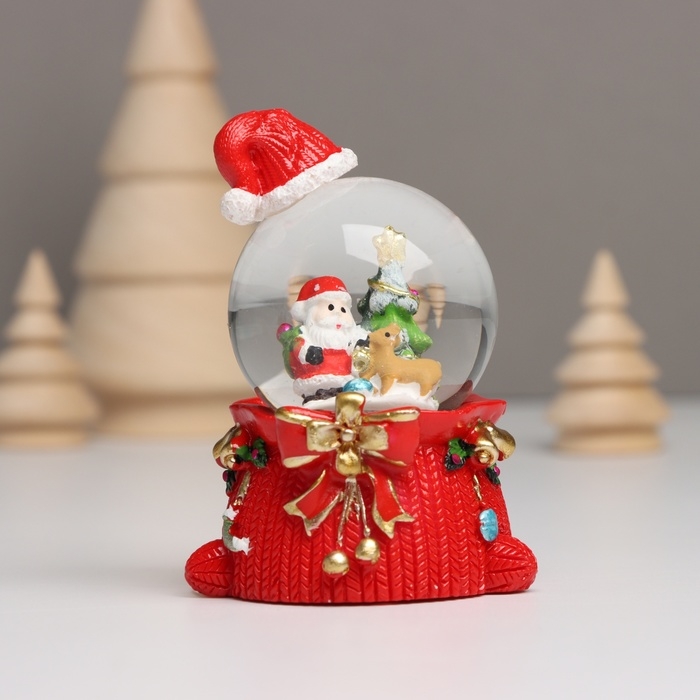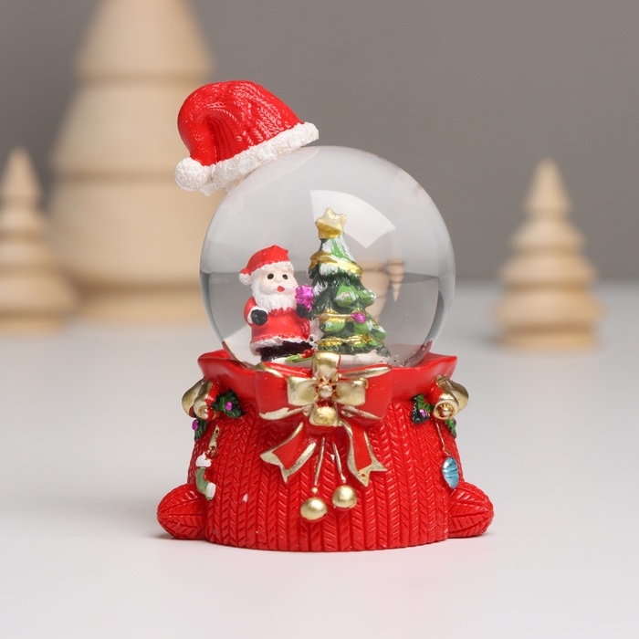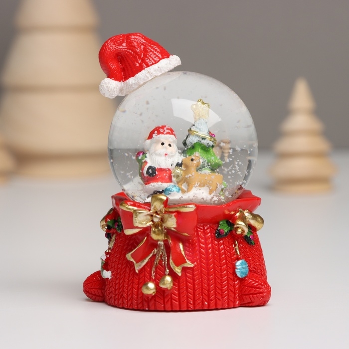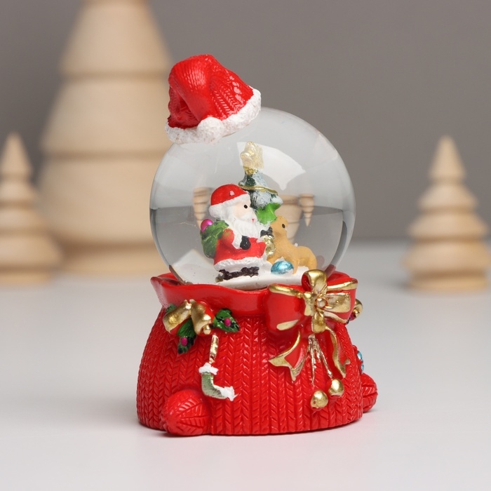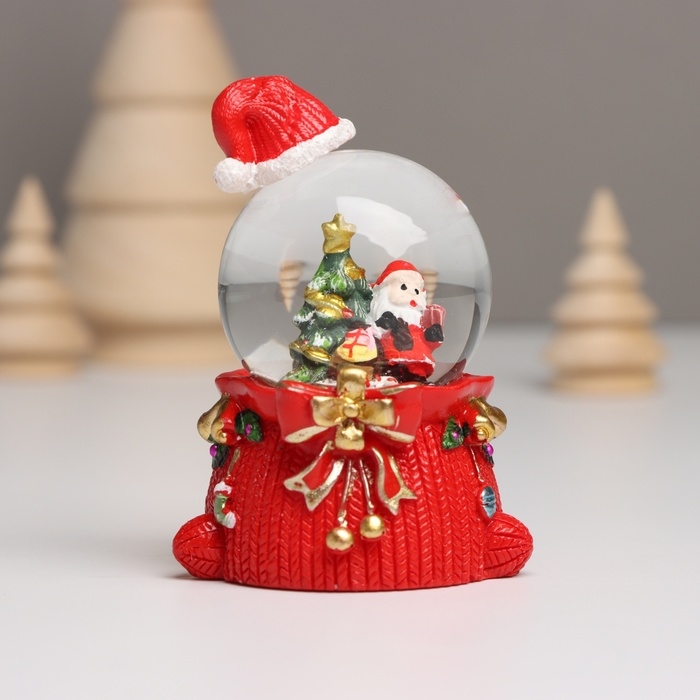 Сувенир полистоун водяной шар свет "Дед Мороз. Колпак и мешок с подарками" МИКС 4,5х5,5х8 см 10459