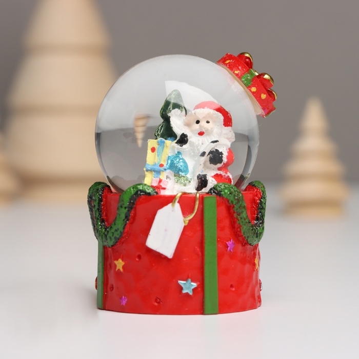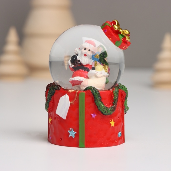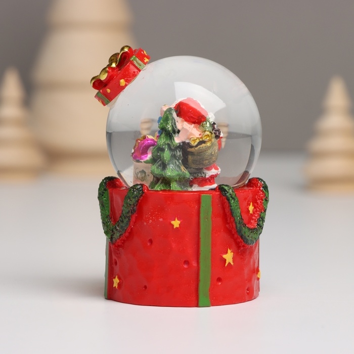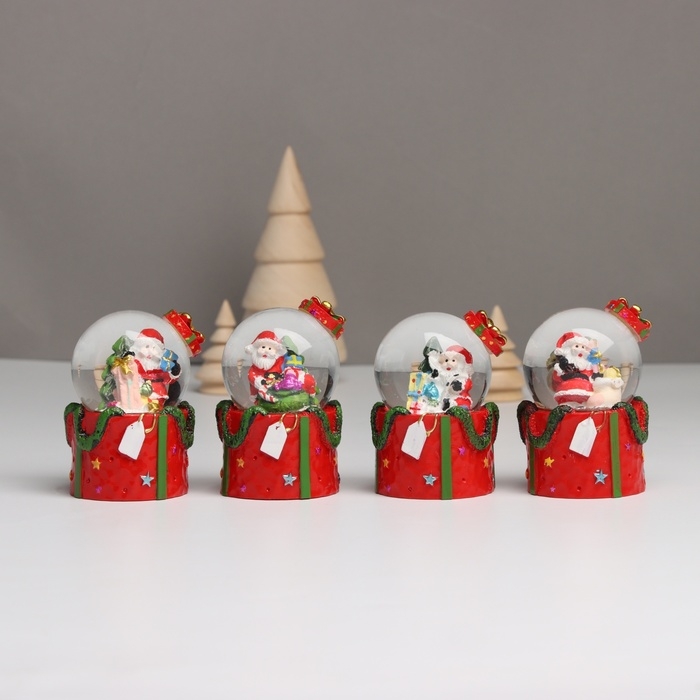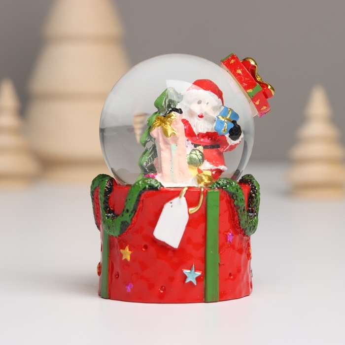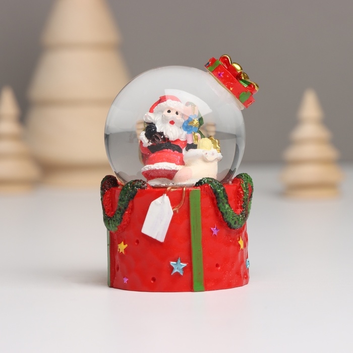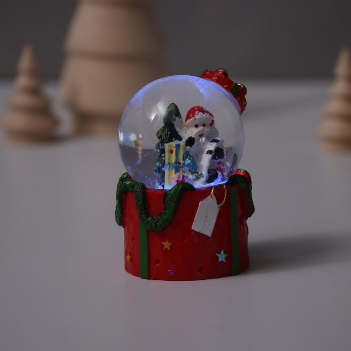 Сувенир полистоун водяной шар свет "Дед Мороз. Подарок" МИКС 4,5х4,5х7,5 см