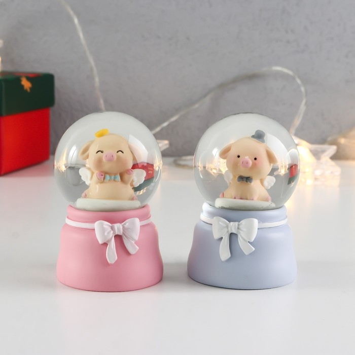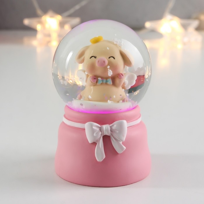 Сувенир полистоун водяной шар свет "Хрюша с крылышками" МИКС d=4,5 см 7х4,5х4,5 см