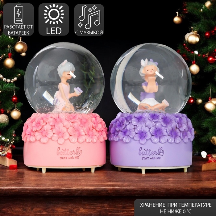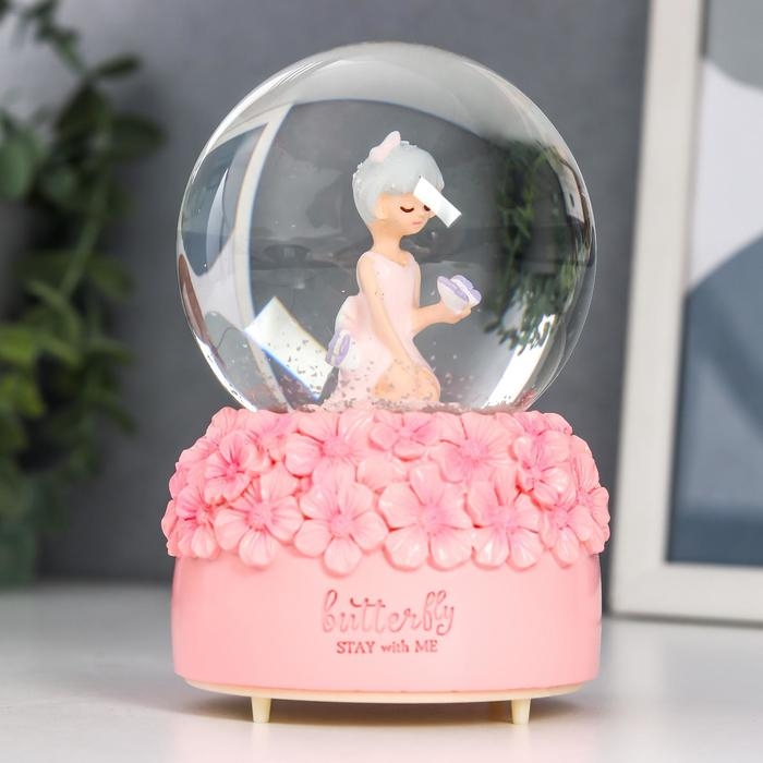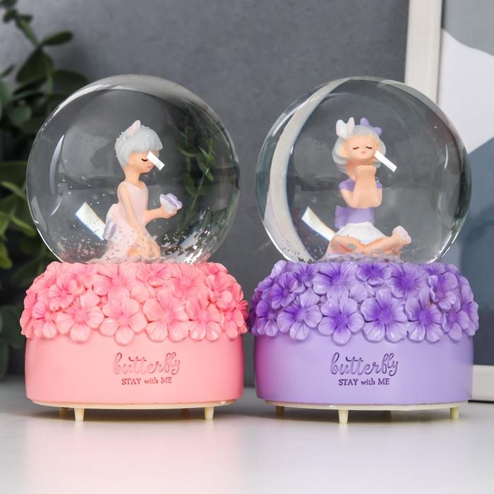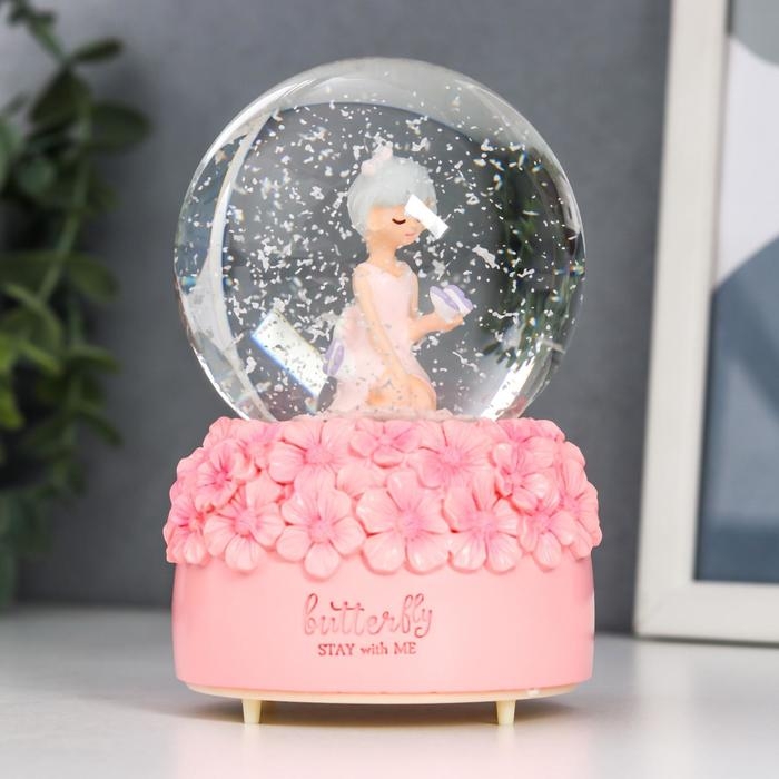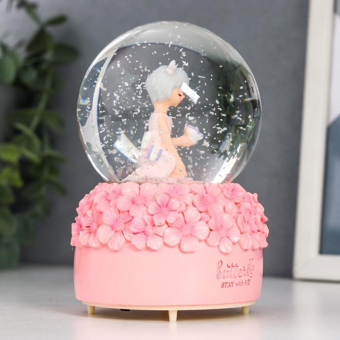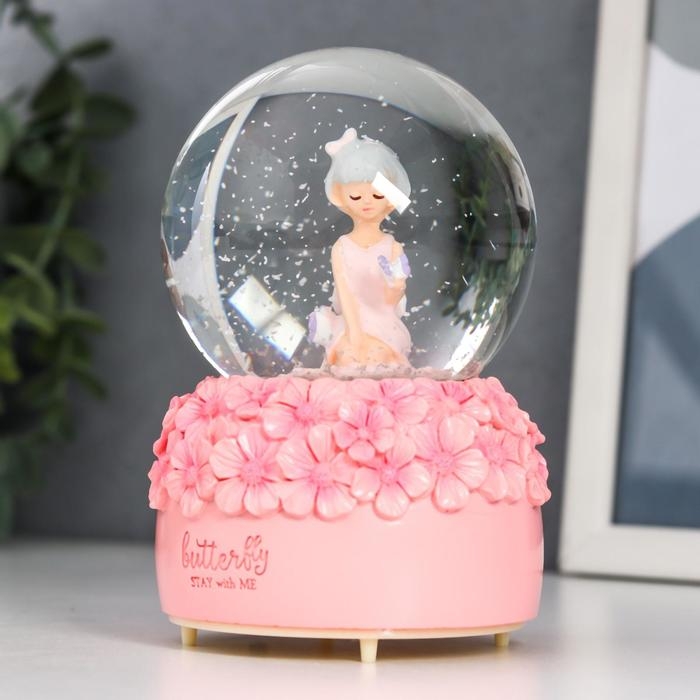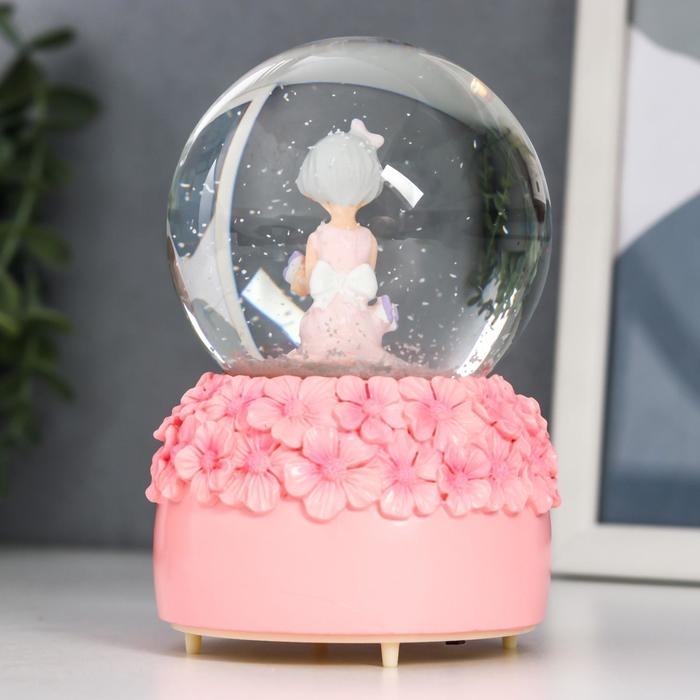 Сувенир полистоун водяной шар свет, музыка "Малышка и незабудки" d=8 см МИКС 12,5х8х8 см