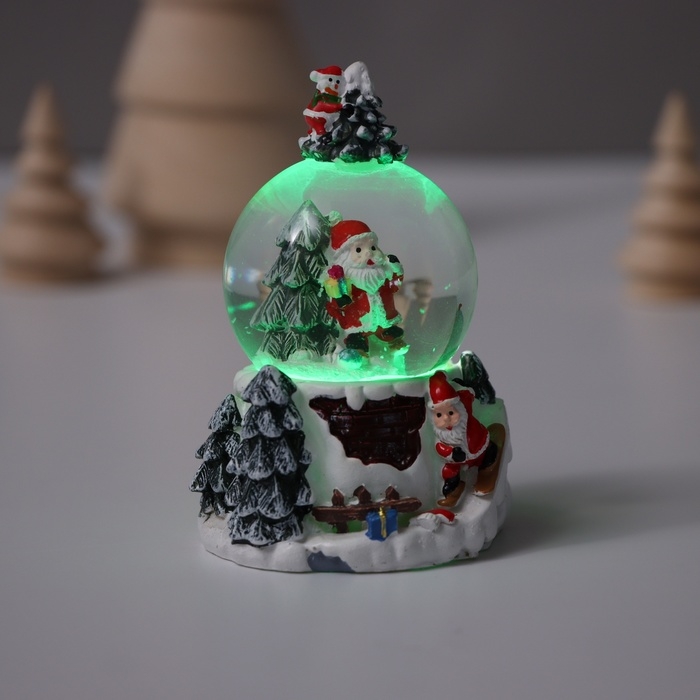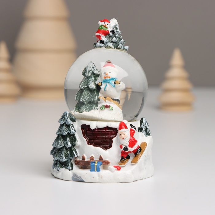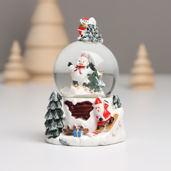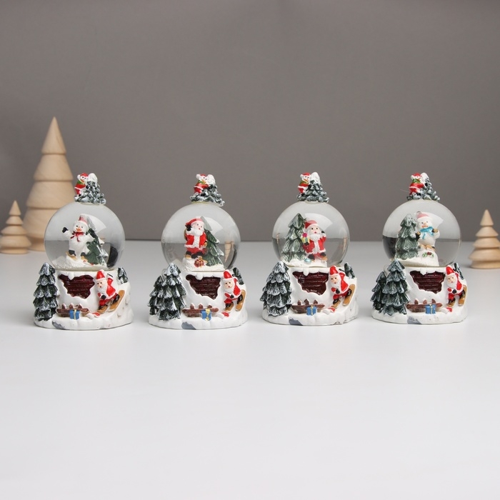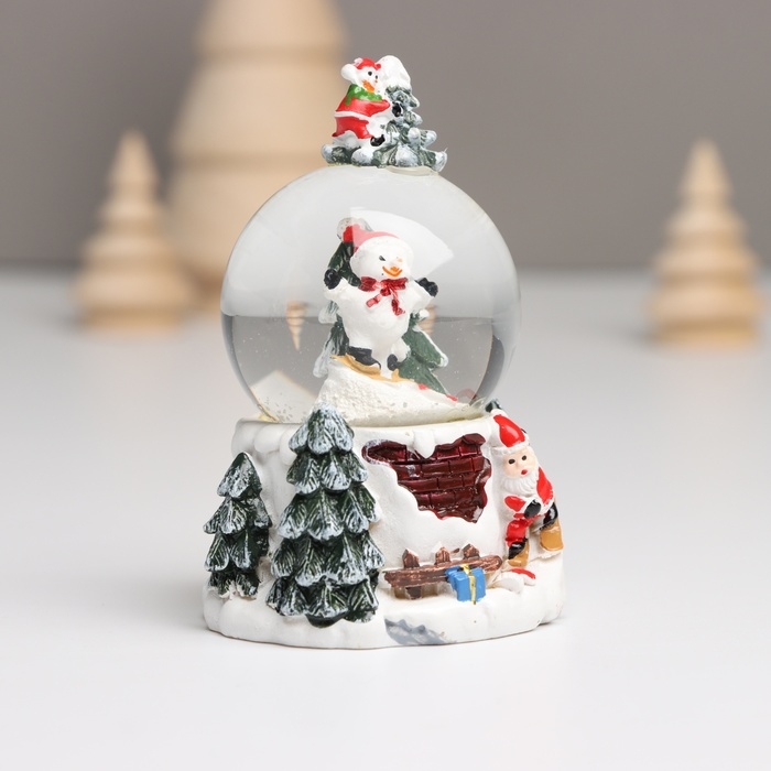 Сувенир полистоун водяной шар свет "Снеговик. Ёлочка" МИКС 5,5х5,5х9 см