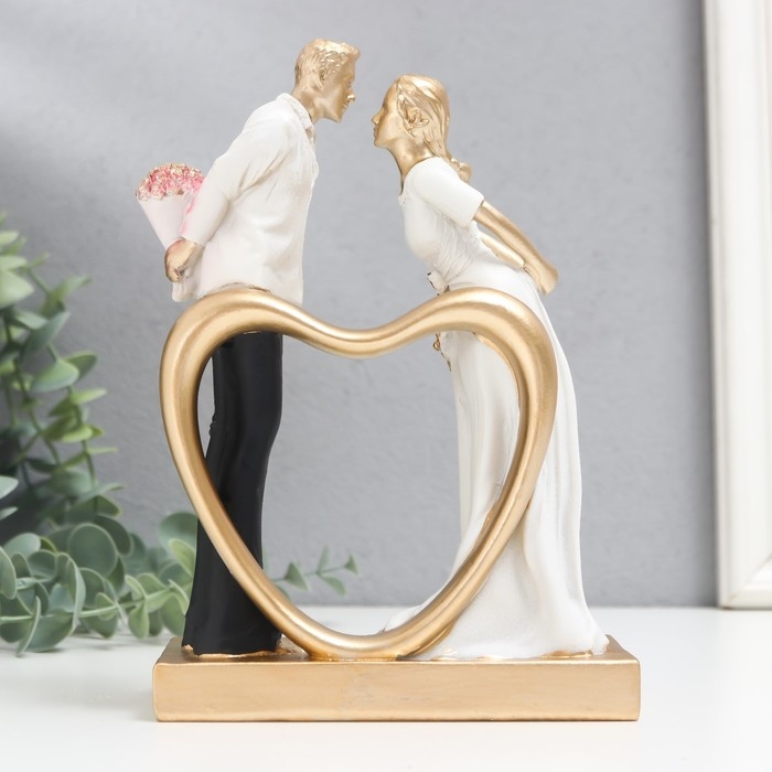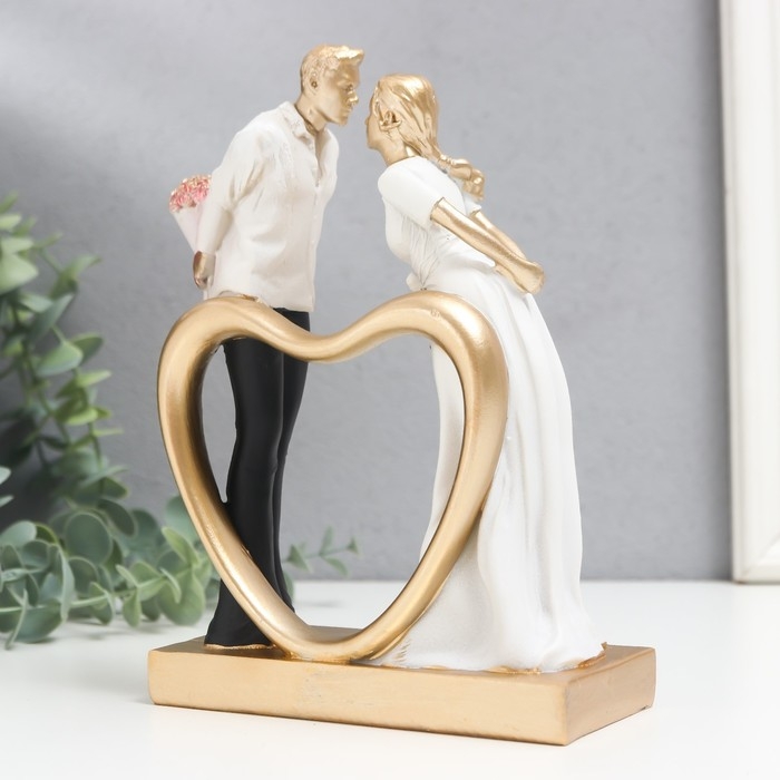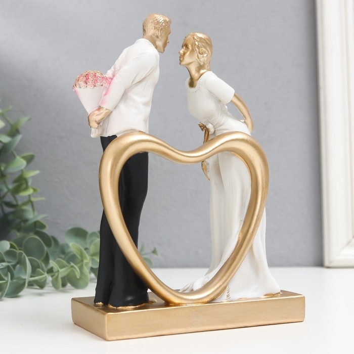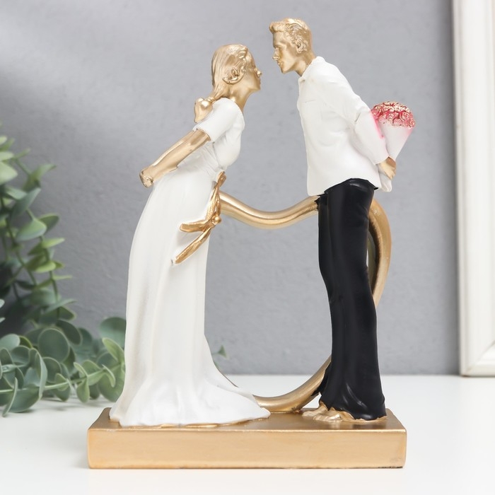 Сувенир полистоун "Встреча влюблённых" чёрно-белый с золотом 6х13,5х19,5 см