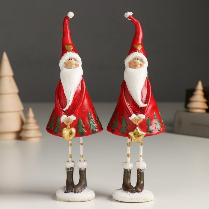 Сувенир полистоун "Высокий Дед Мороз в красном наряде, с сердцем/звездой" МИКС 4,5х6х19 см