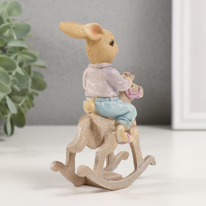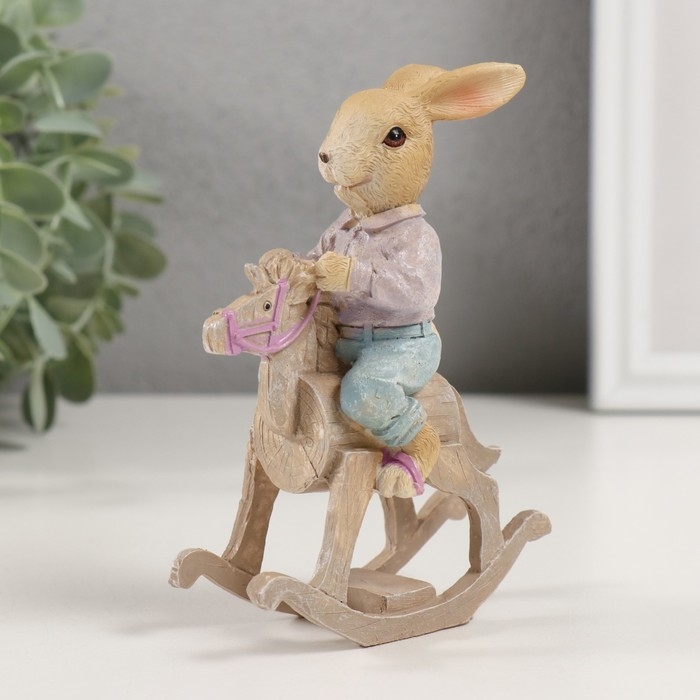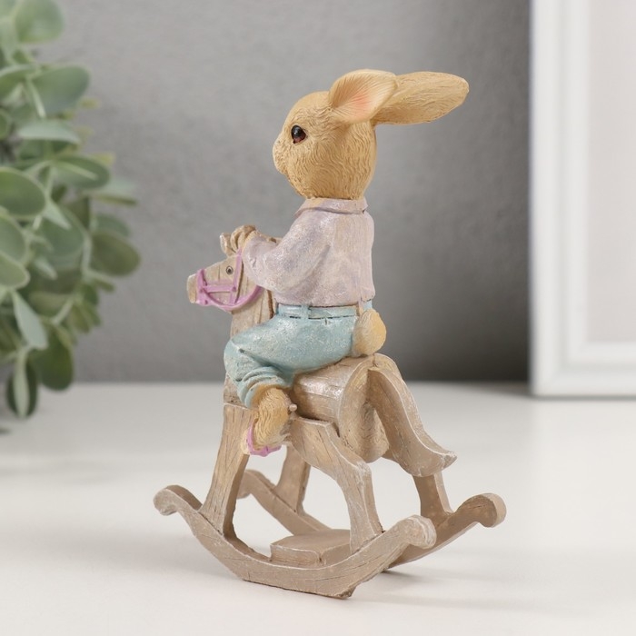 Сувенир полистоун "Зайка на качалке-лошадке" 9,5х4,5х13 см