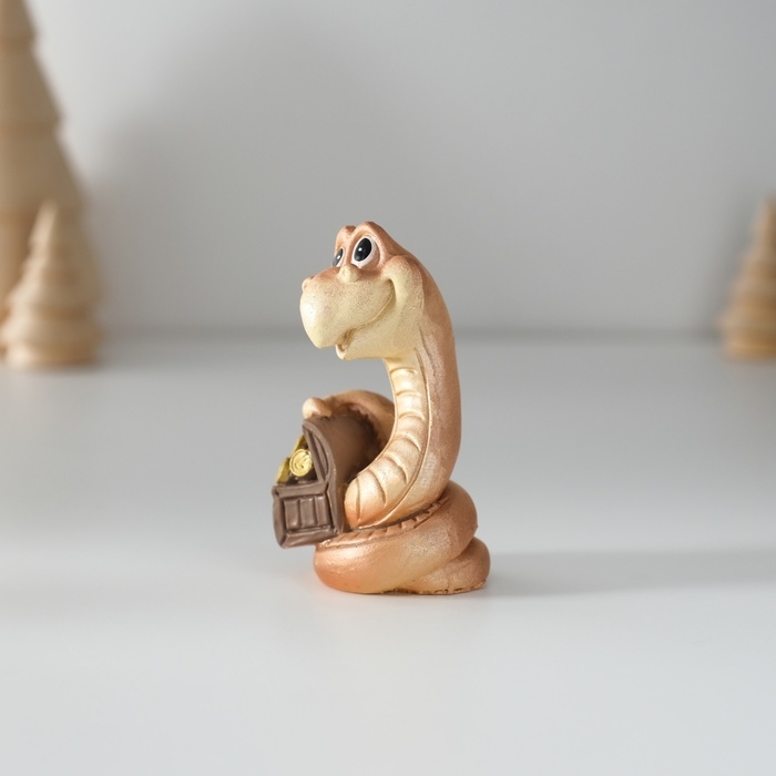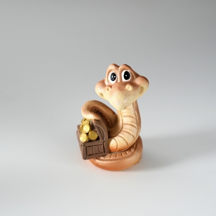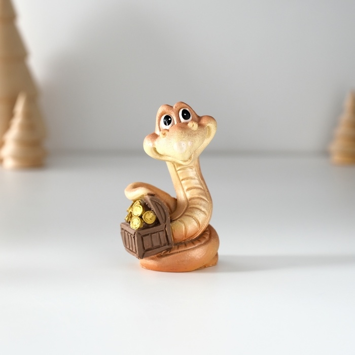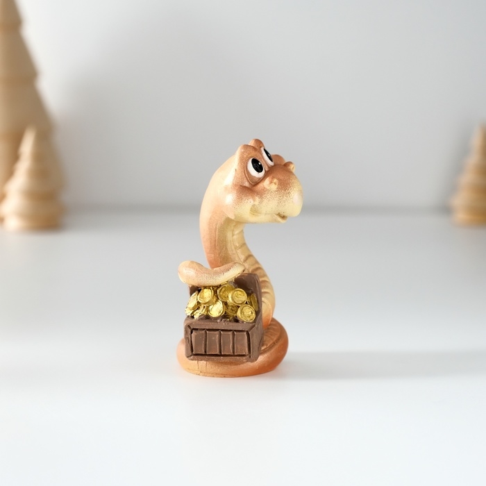 Сувенир полистоун "Змейка с сундуком/мешком" МИКС 3,5х3,5х6,5 см