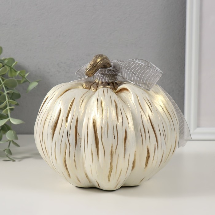 Сувенир полистоун "Золотистая тыква с бантом" 18х17х15,5 см