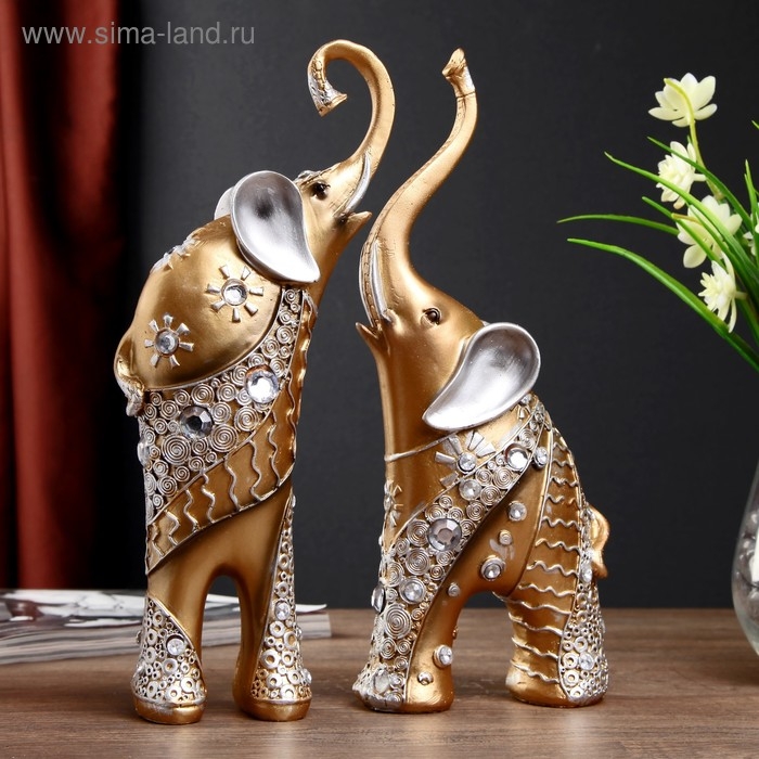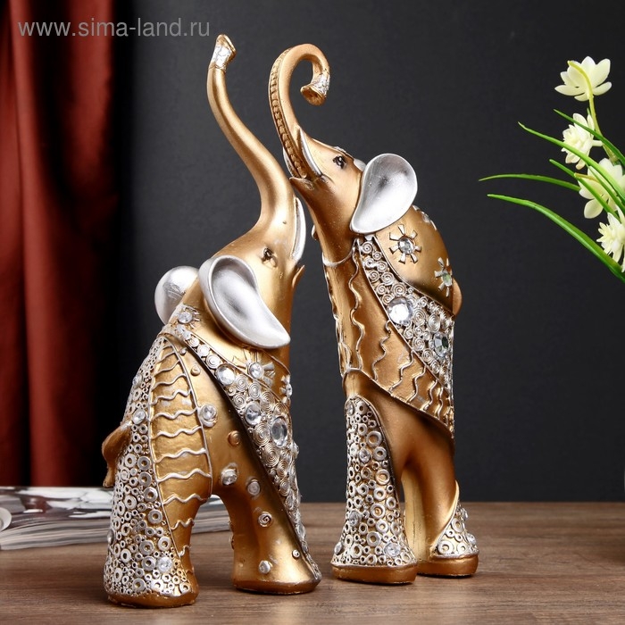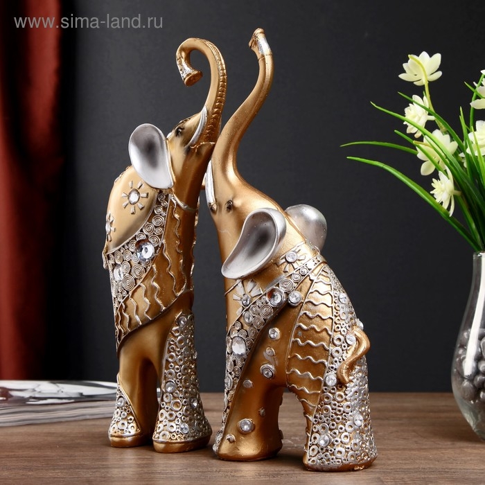 Сувенир полистоун "Золотистые слоны с белыми стразами" набор 2 шт 28,5х21х8,3 см