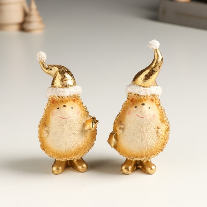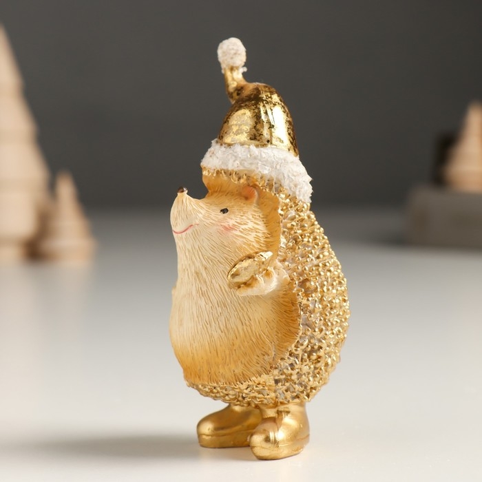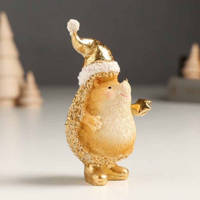 Сувенир полистоун "Золотой ёжик в новогоднем колпаке, со звёздочкой" МИКС 4,5х5х11 см