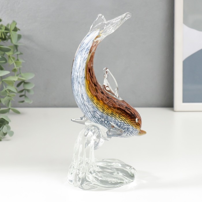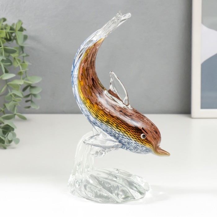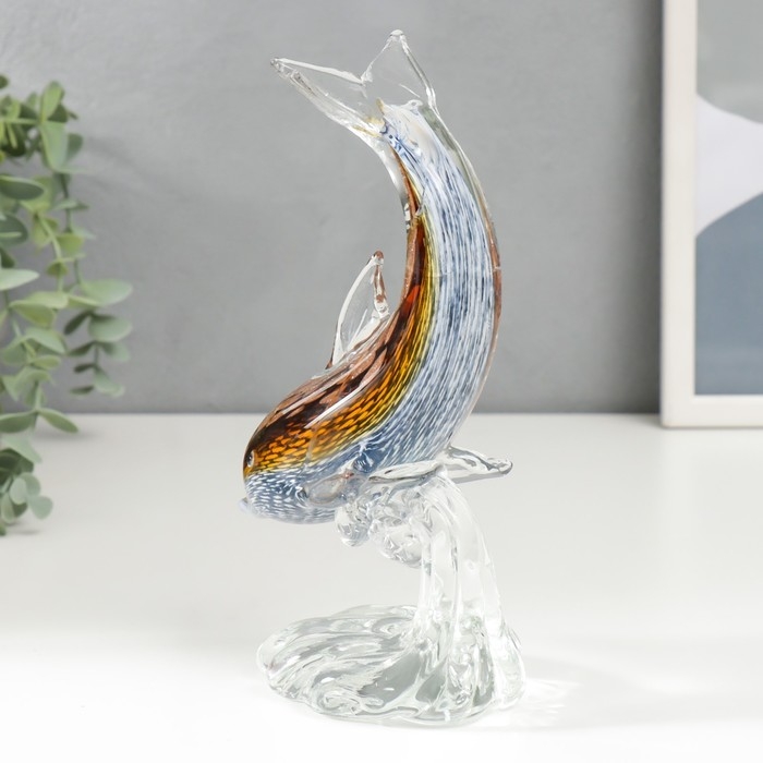 Сувенир стекло "Дельфин на волне" под муранское стекло МИКС 20,5х10 см