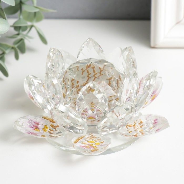 Сувенир стекло "Лотос прозрачный, на лепестках лотосы" 7х13,5х13,5 см