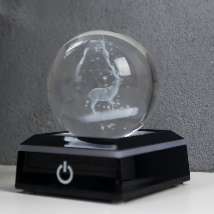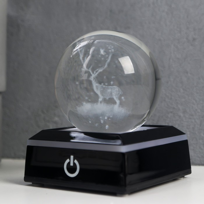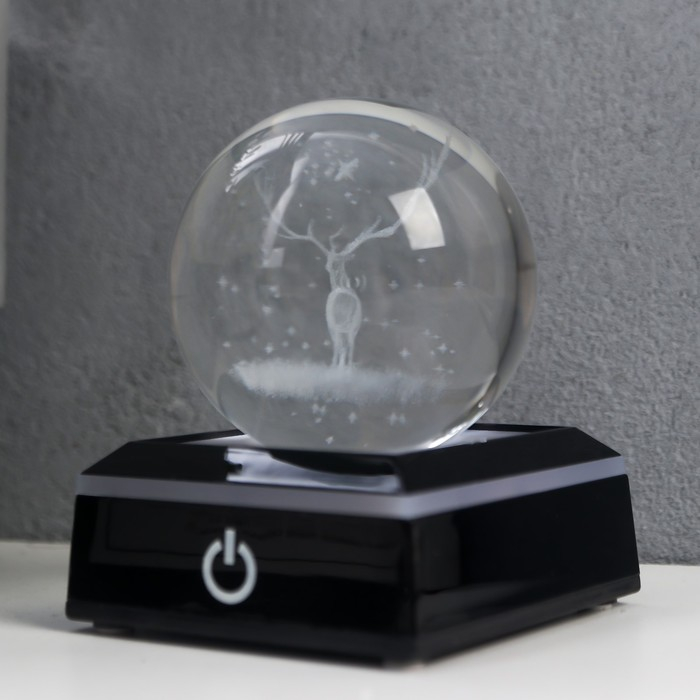 Сувенир стекло подсветка "Олень" d=6 см подставка LED от 3AAA, провод USB 9х7х7 см