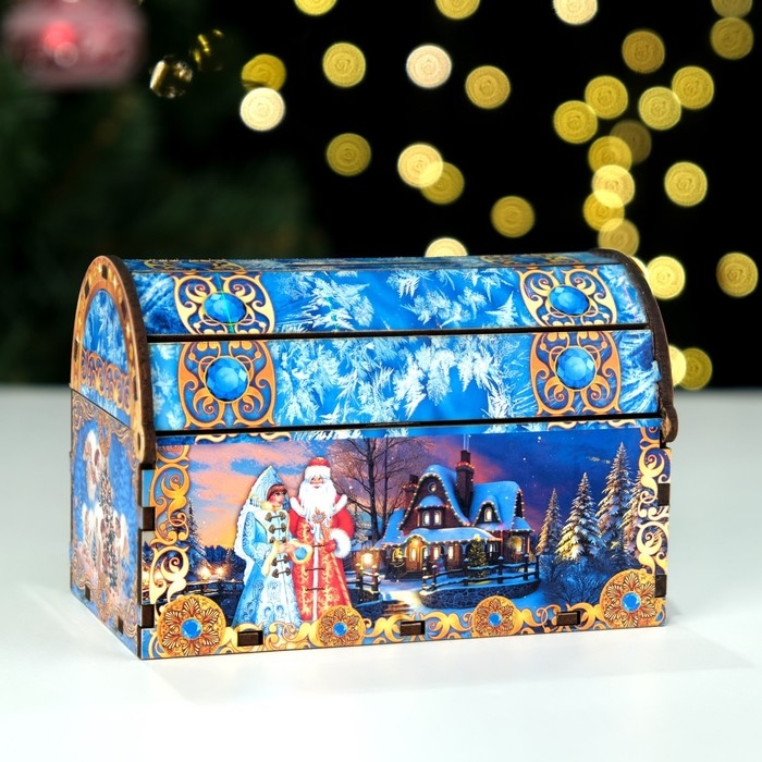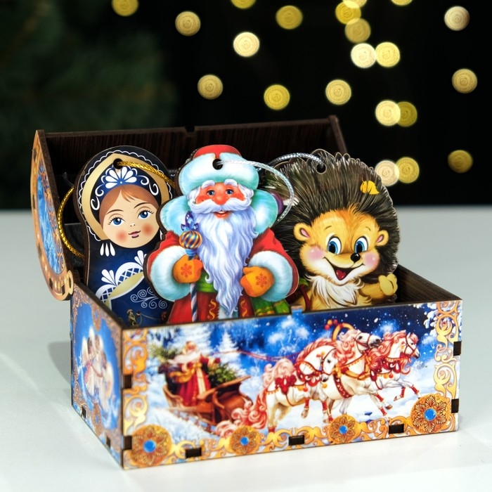 Сувенир сундук - копилка с новогодними игрушками (3 шт.) "Ежик", 13 х 7,5 х 8,5 см