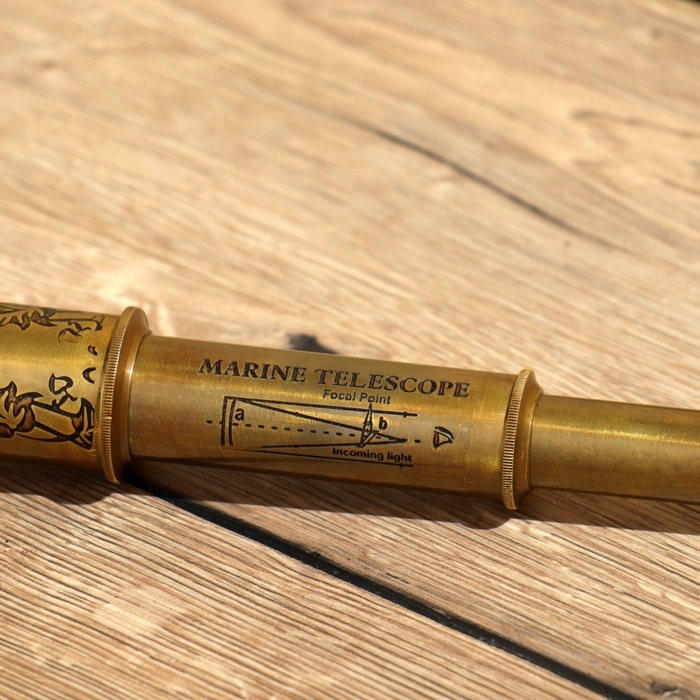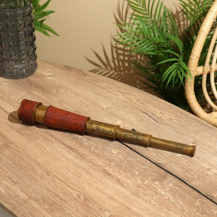 Сувенир "Телескоп" 43 см, гравированный, (диаметр объектива 4 см), латунь