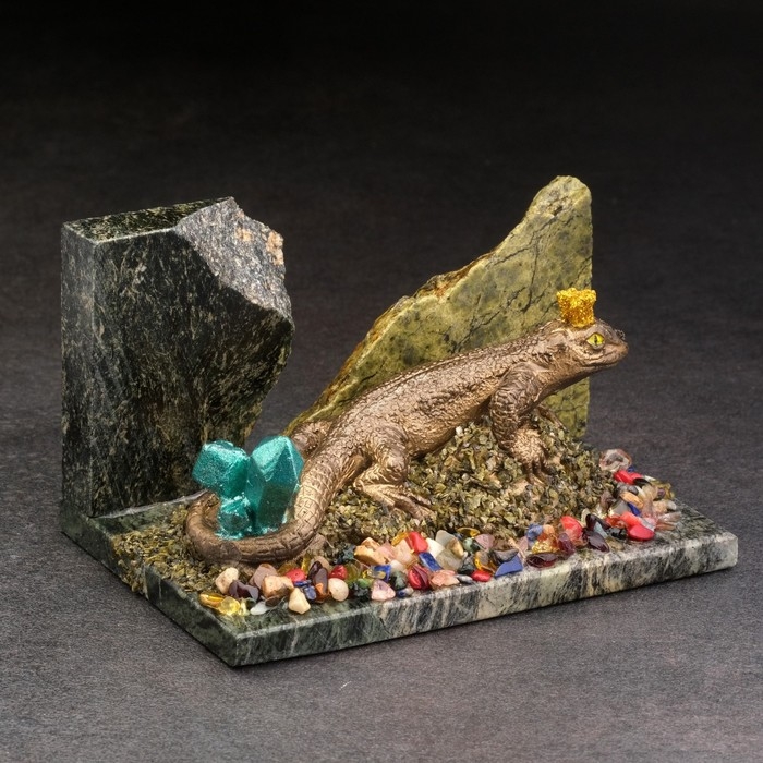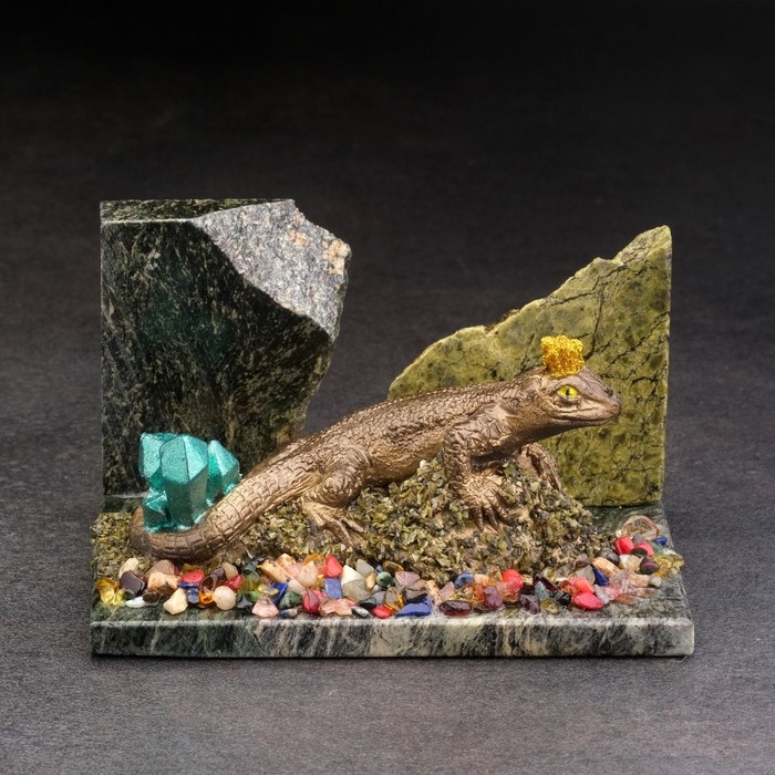 Сувенир "Ящерица", 8х12х5 см, змеевик, гипс