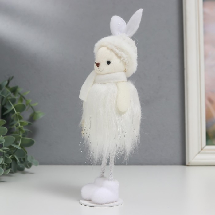 Сувенир "Зайка в пушистой белой шубке и шапочке" 22,5 см