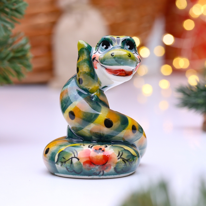 Новый год. Сувенир символ года "Змея Рио", гжель