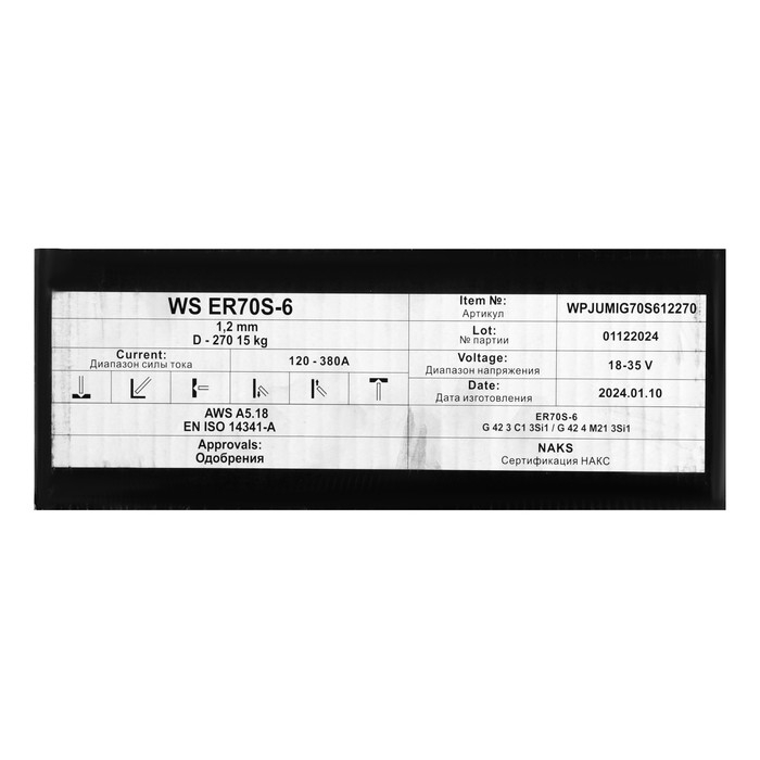 Сварочная проволока WS WELDESHIP, ER70S-6, омедненная, d=1.2 мм, 15 кг