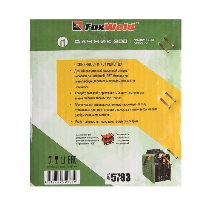 Сварочный аппарат инверторный FOXWELD Дачник 200, 5300 Вт, 20-200 А, d=4 мм, Hot start