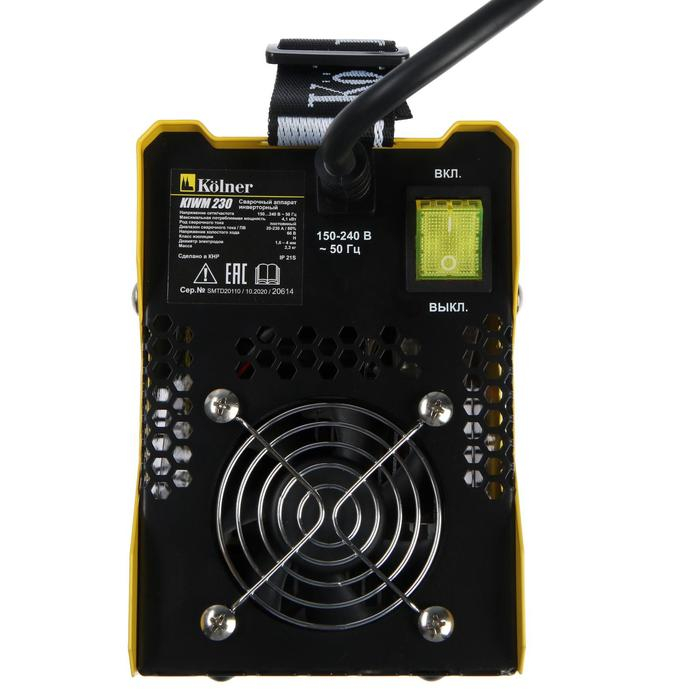 Сварочный аппарат инверторный Kolner KIWM 230, 230 А, 4.1 кВт, 20-230 А, d=1.6-4 мм, ПВ 80%