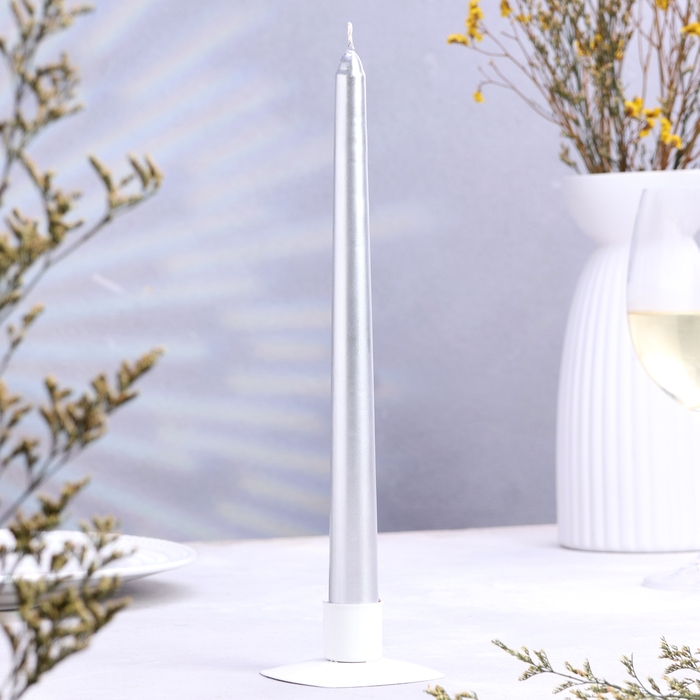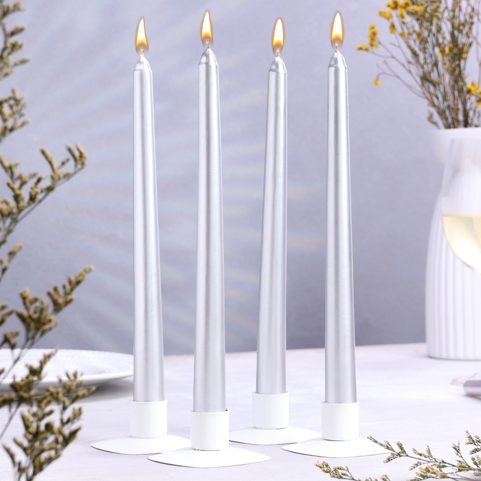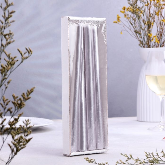 Свеча античная, 2,3х 25 см, 4 шт, лакированная, серебряный металлик