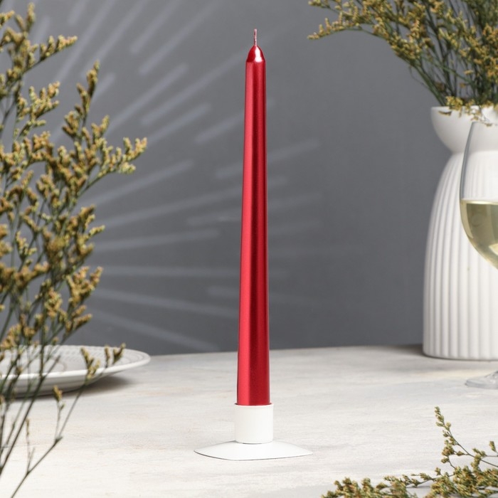 Свеча античная, 2,3х 25 см, лакированная , красный металлик