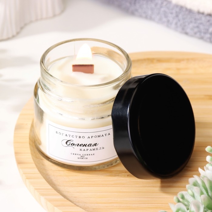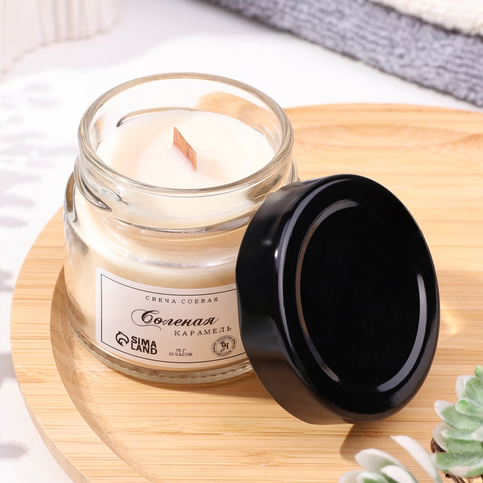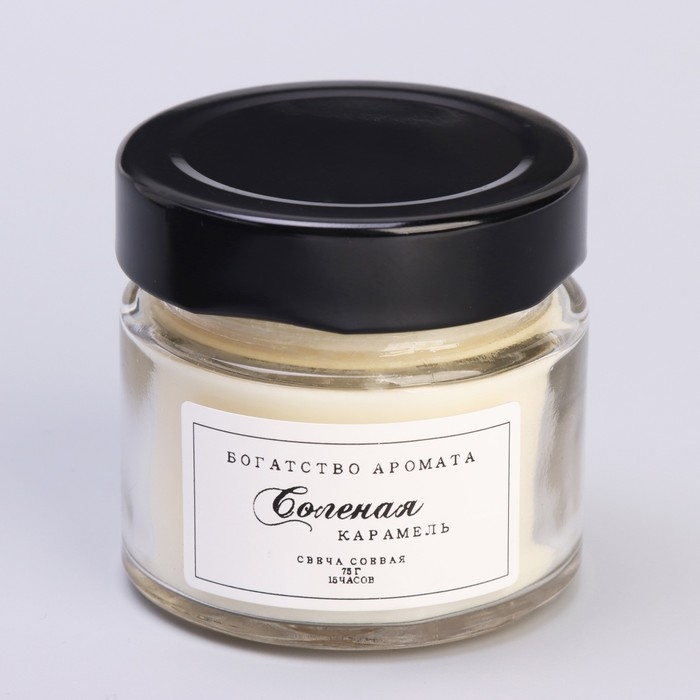 Свеча ароматическая из соевого воска в банке, 75 г, соленая карамель