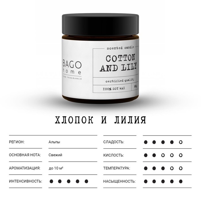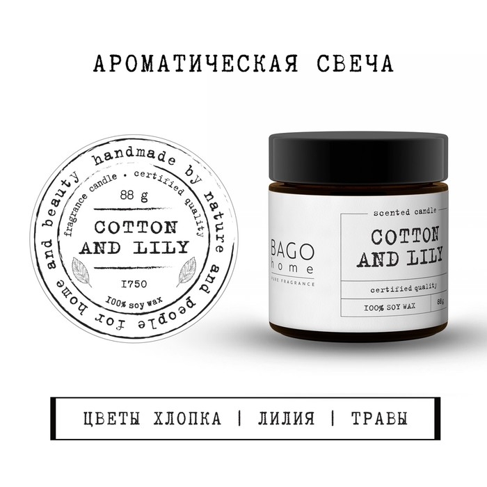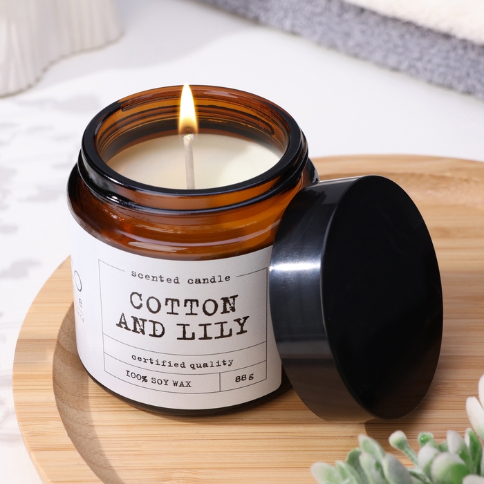 Свеча ароматическая в банке "Хлопок и лилия", совый воск, 88 г
