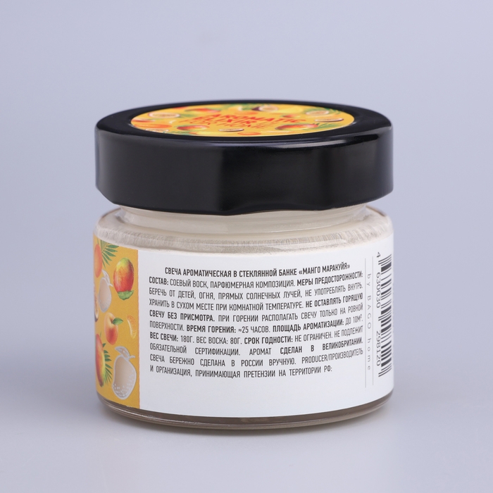 Свеча ароматическая в банке "Манго маракуйя", совый воск, 80 г