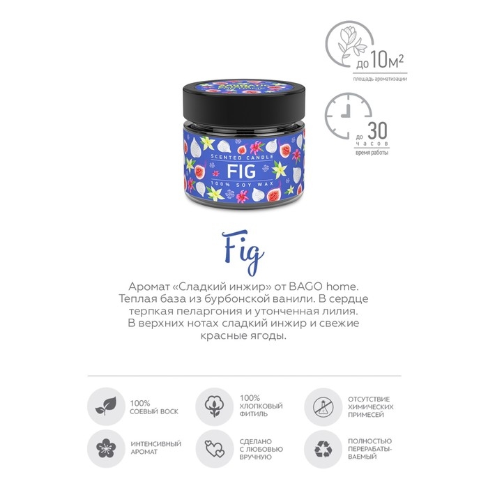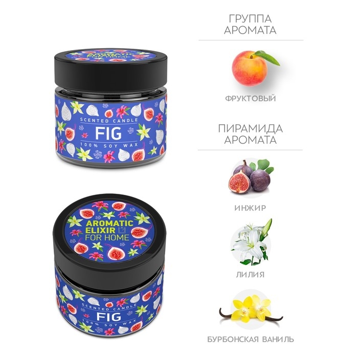 Свеча ароматическая в банке "Спелый инжир", совый воск, 80 г