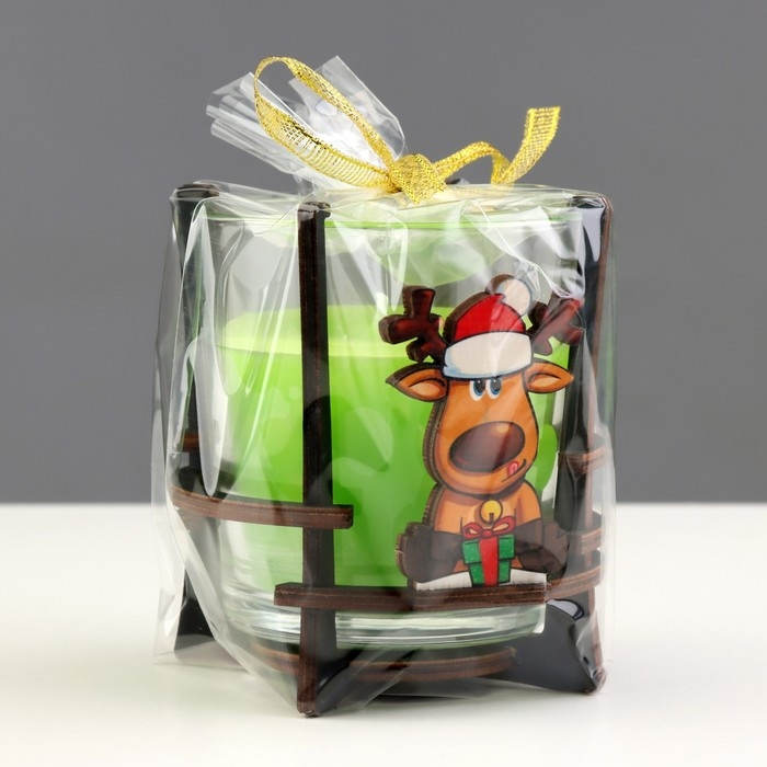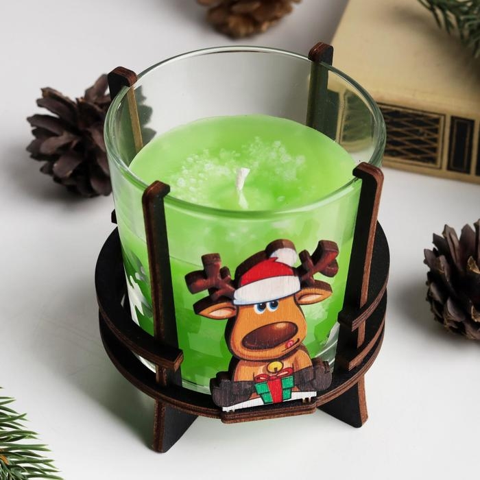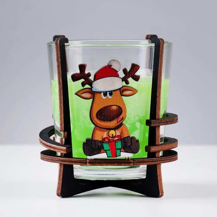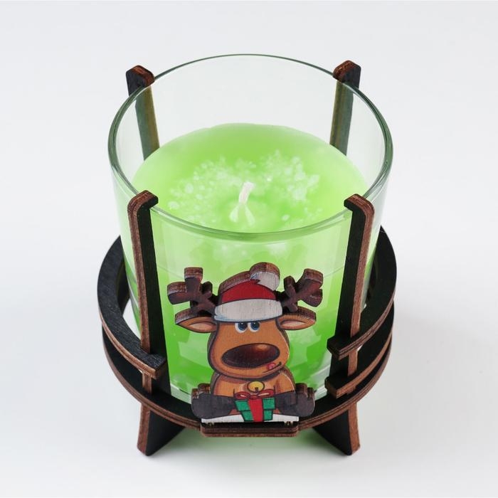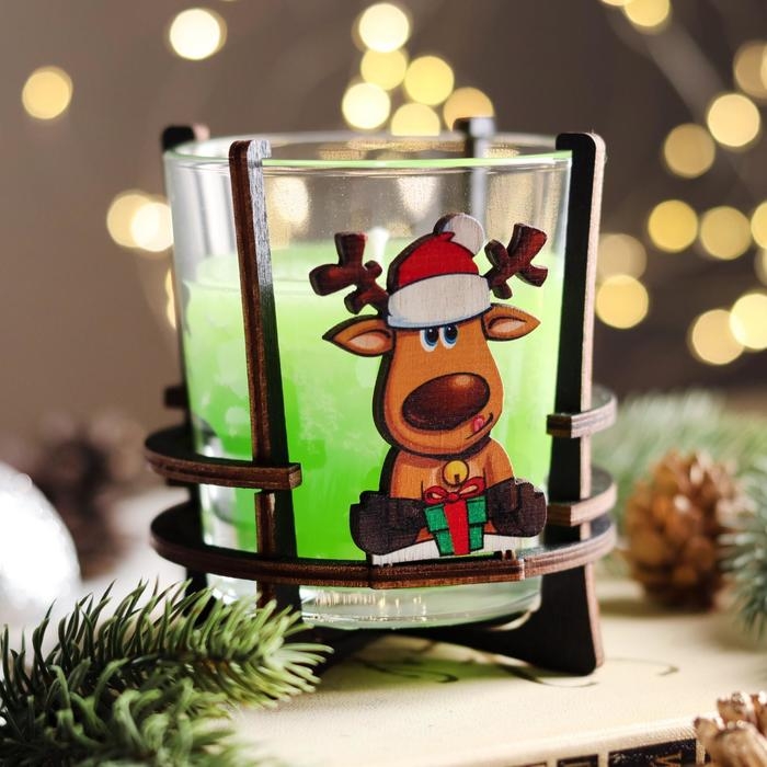 Свеча ароматическая в стакане на подставке "Новогодний олень", 10х9,5х9 см, яблоко