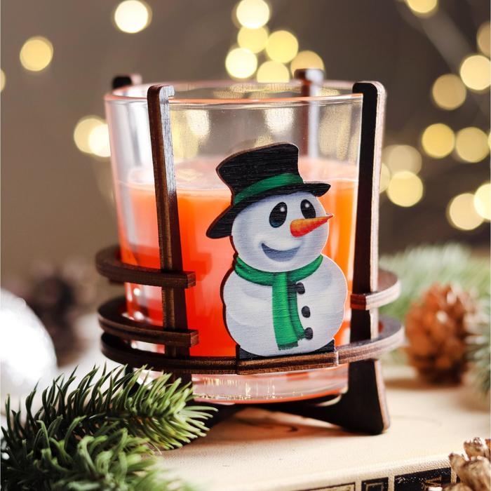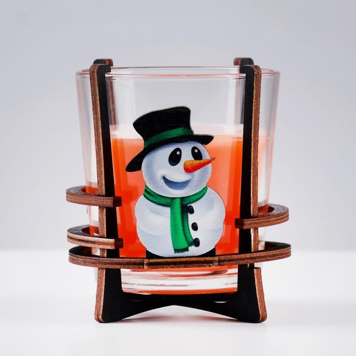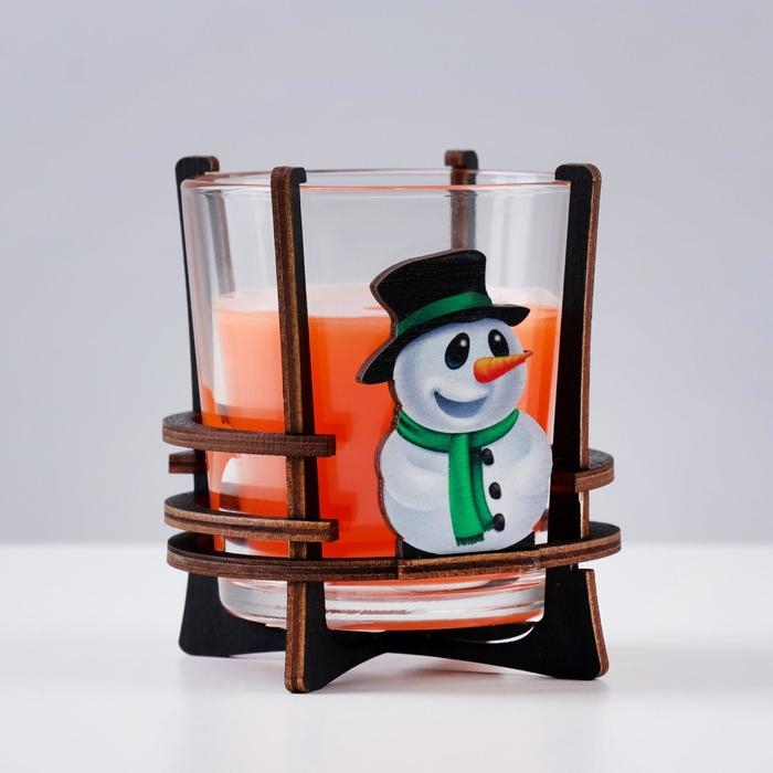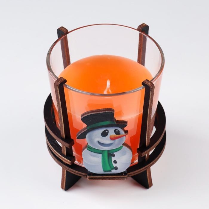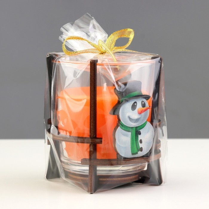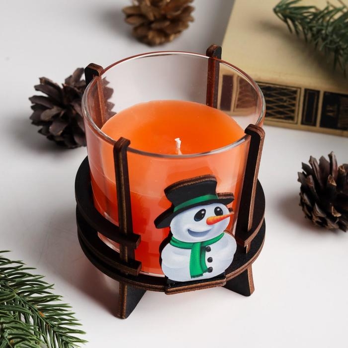 Свеча ароматическая в стакане на подставке "Снеговик", 10х9,5х9 см, апельсин