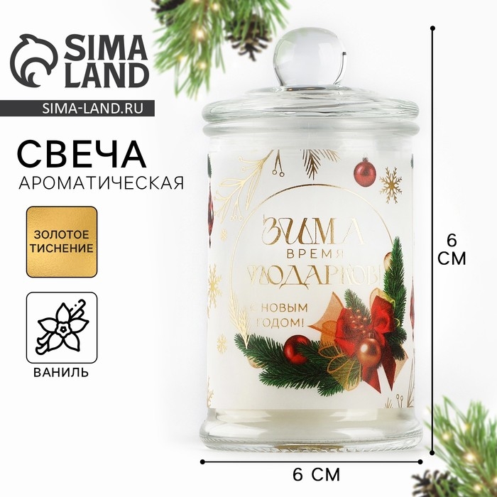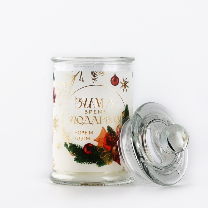 Свеча-баночка новогодняя интерьерная «Новый год: Время подарков», аромат ваниль 11,5 х 5,8 см