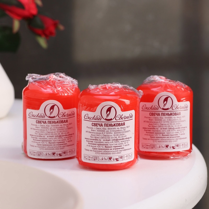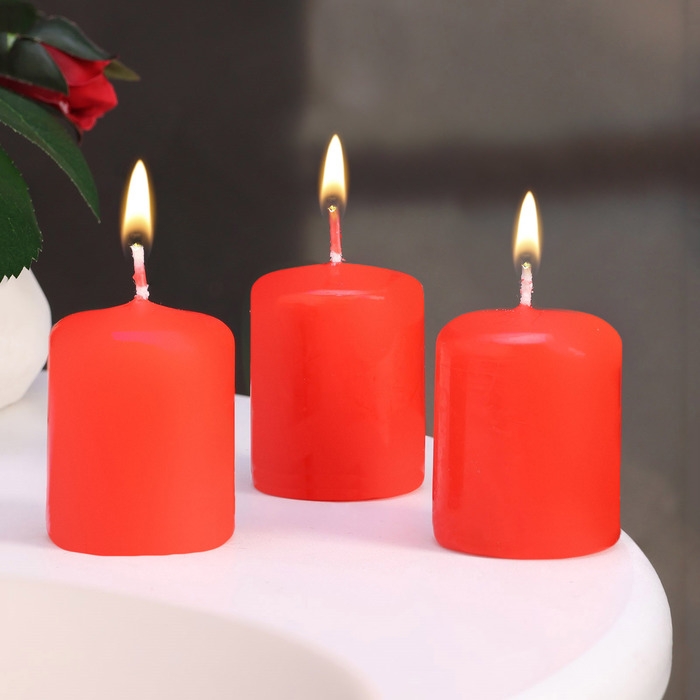 Свеча цилиндр, 4х5 см, набор 3 шт, красная
