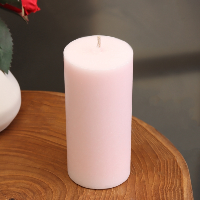 Свеча-цилиндр гладкая, 5х10 см, светло-розовая, 6 ч