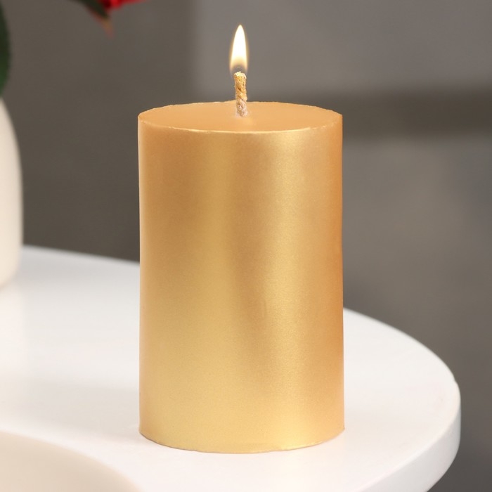 Свеча-цилиндр гладкая, 5х7,5 см, золото, 6 ч