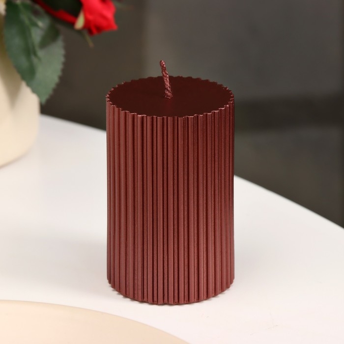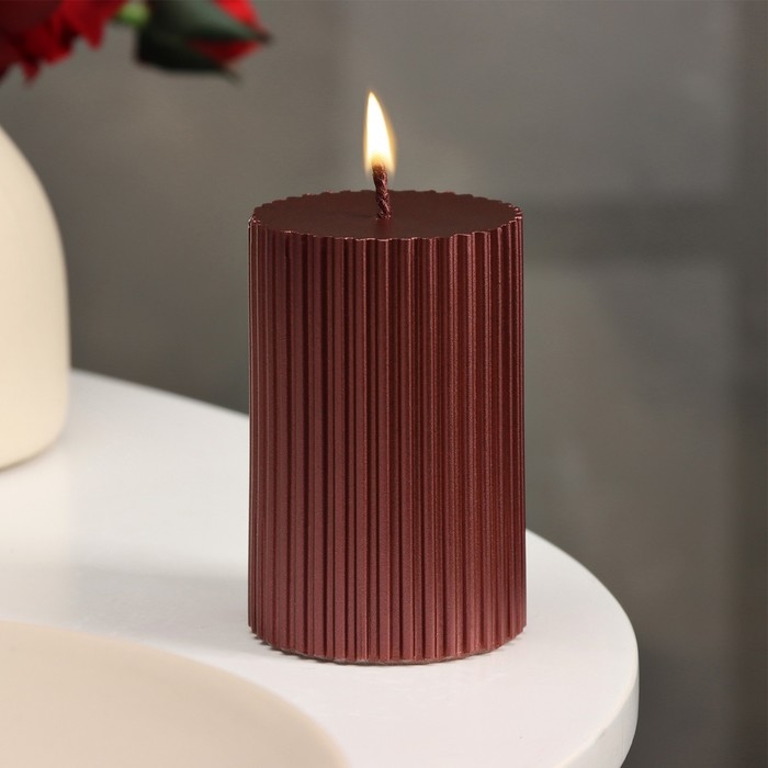Свеча-цилиндр с гранями, 5х7,5 см, винный металлик, 6 ч