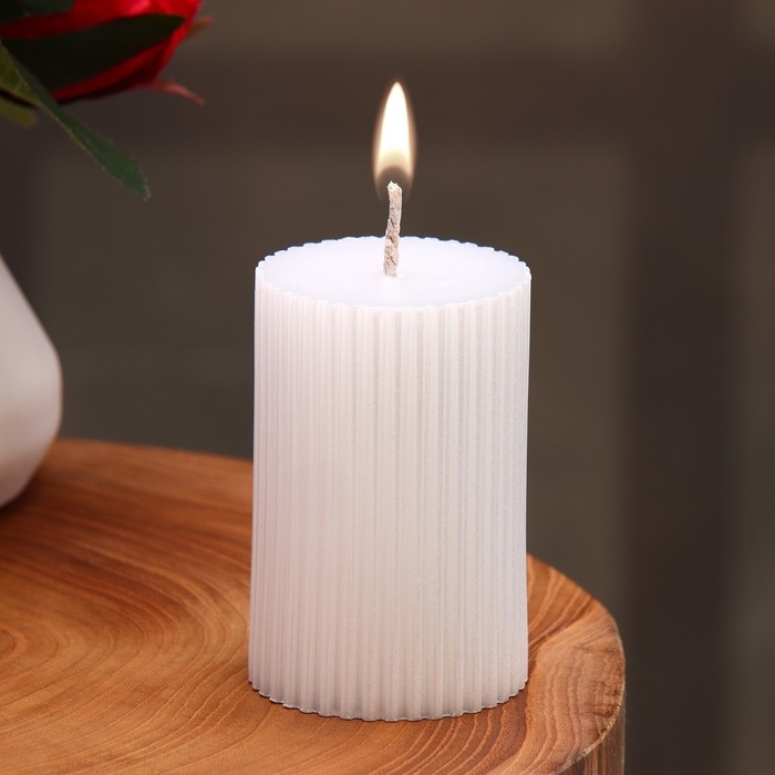 Свеча-цилиндр с гранями, 5х7,5 см, жемчужная, 6 ч