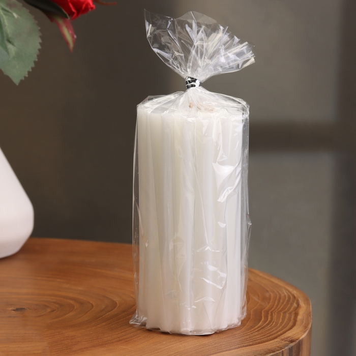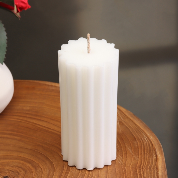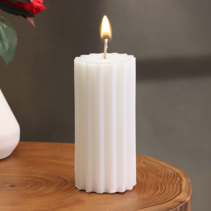 Свеча-цилиндр с ребрами, 5х10см., белая