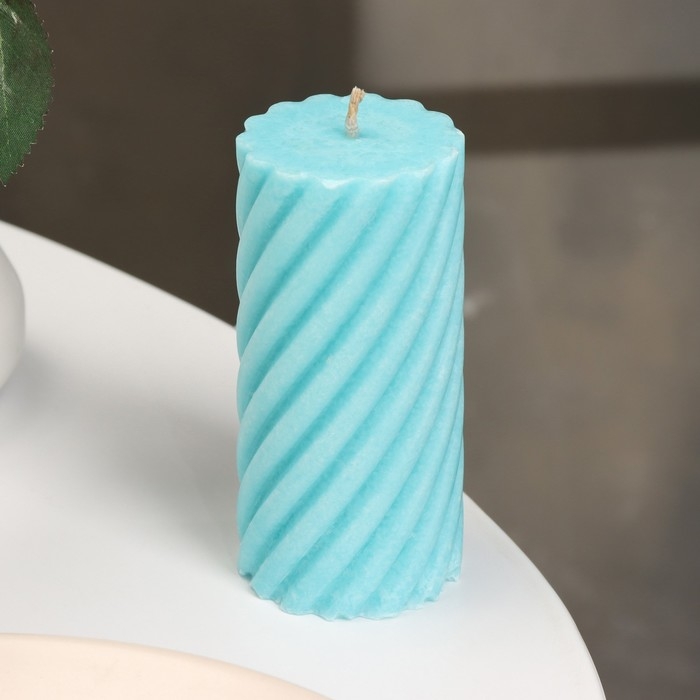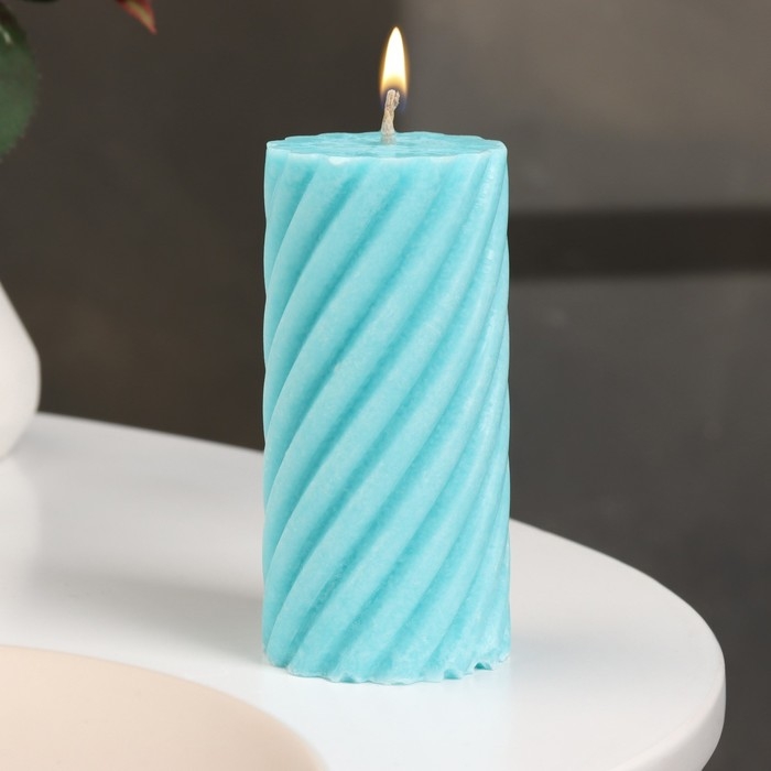 Свеча-цилиндр "Спираль", 5х10 см, бирюзовая, 6 ч