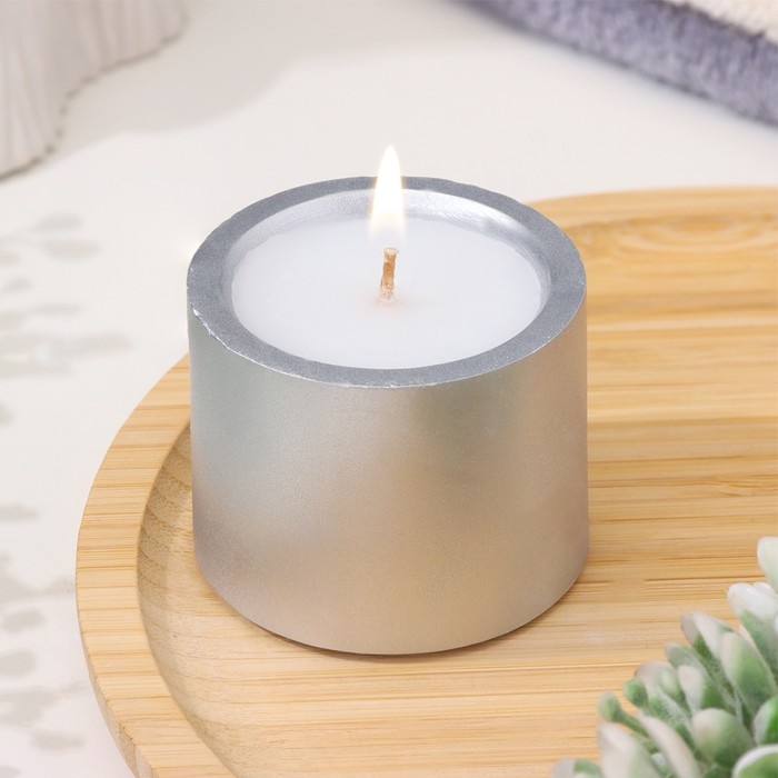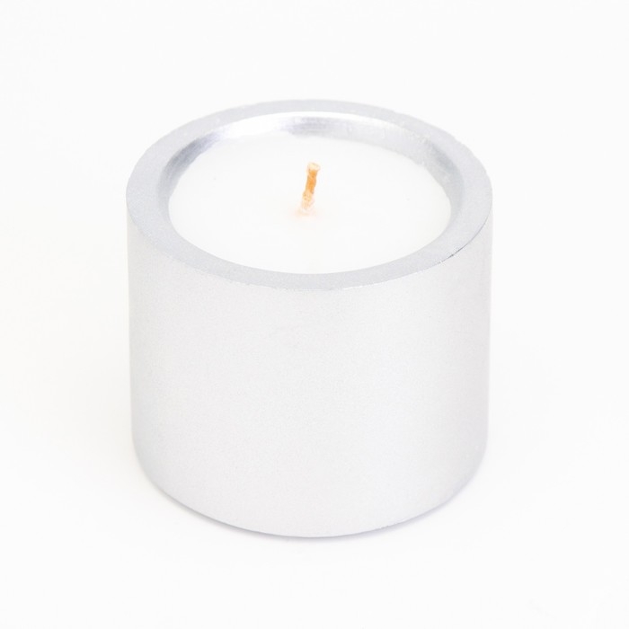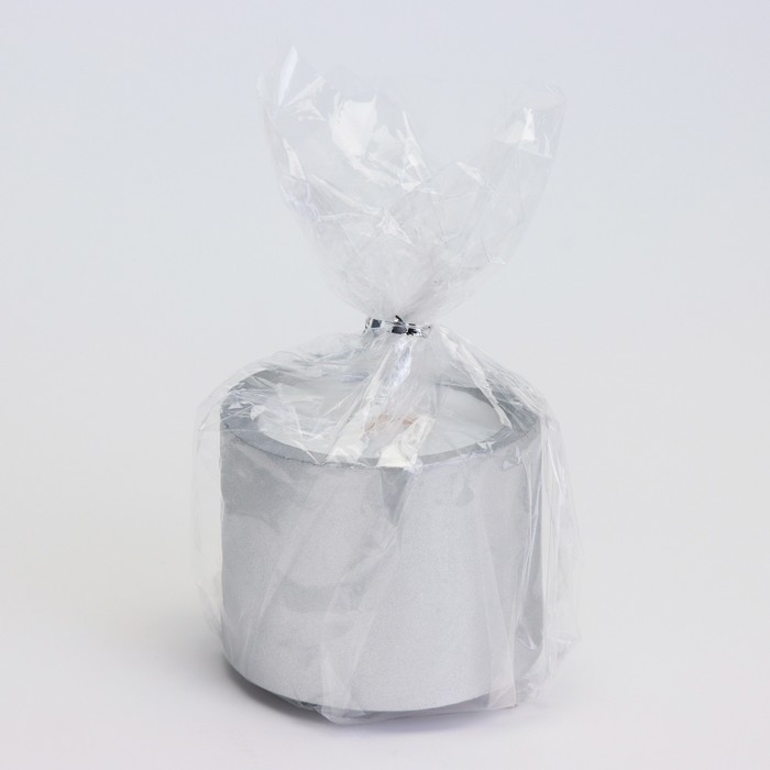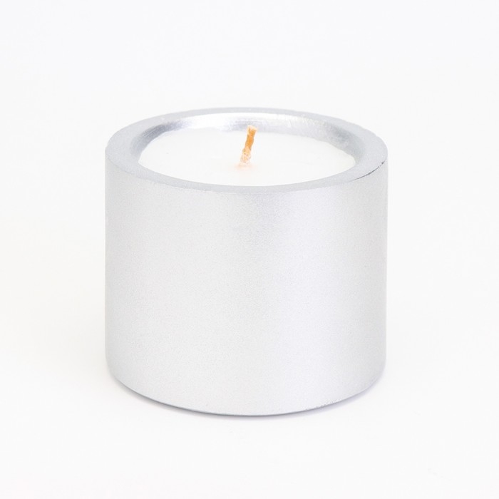 Свеча "Цилиндр" в подсвечнике из гипса малый, 5х3,5см,серебро
