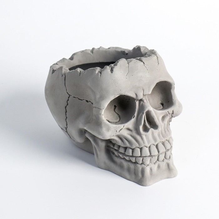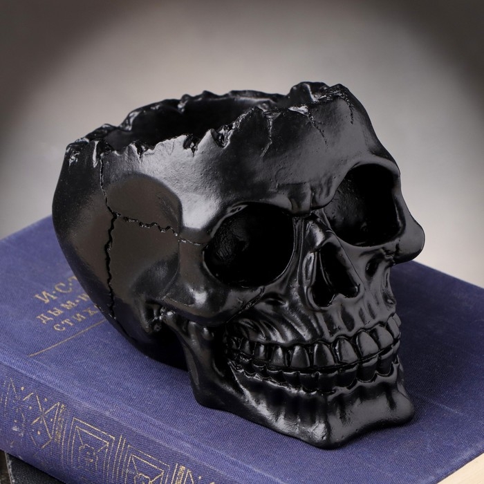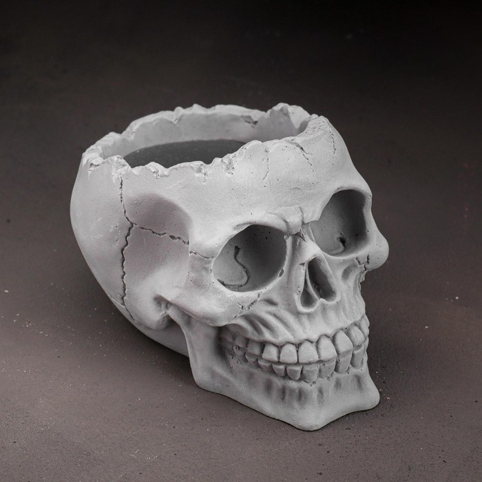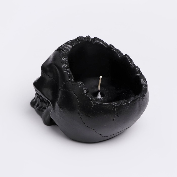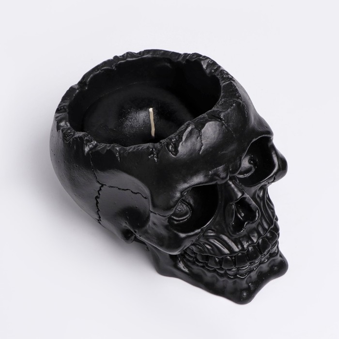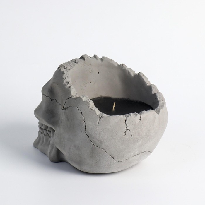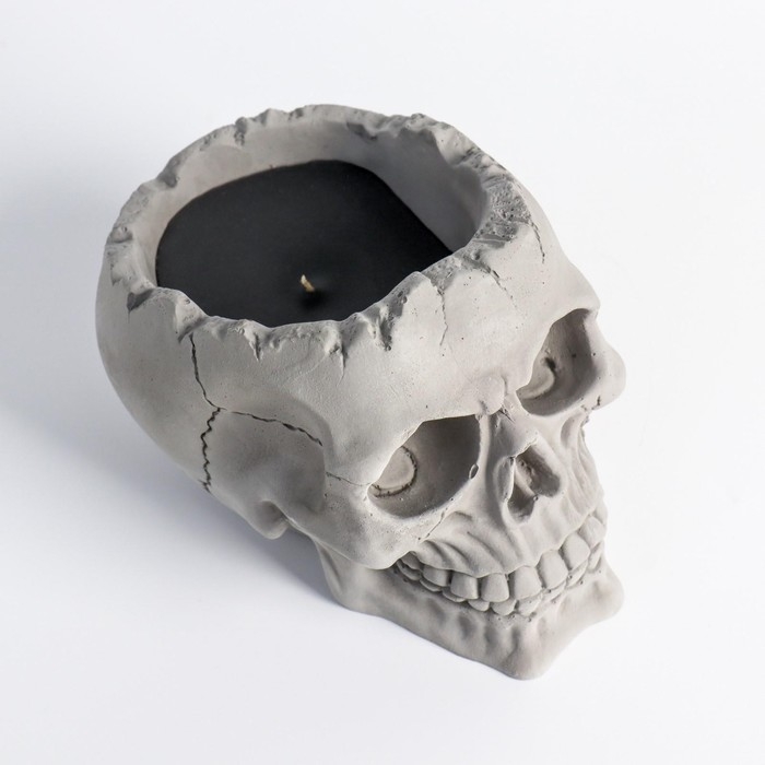 Свеча фигурная ароматическая в бетоне "Череп", 14х11 см, черный, печенье и кожа