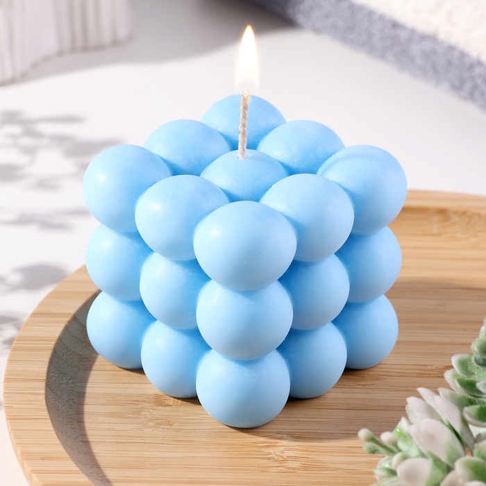 Свеча фигурная "Бабл куб", 6 см, голубая