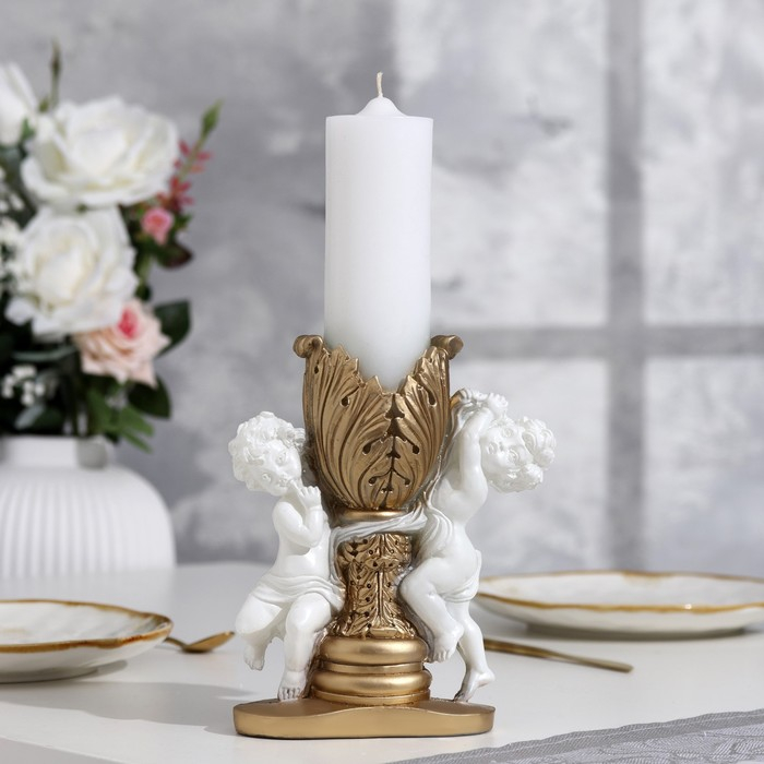 Свеча фигурная свадебная "Два ангела", 29,5х15 см, бело-золотая, 48 ч, домашний очаг