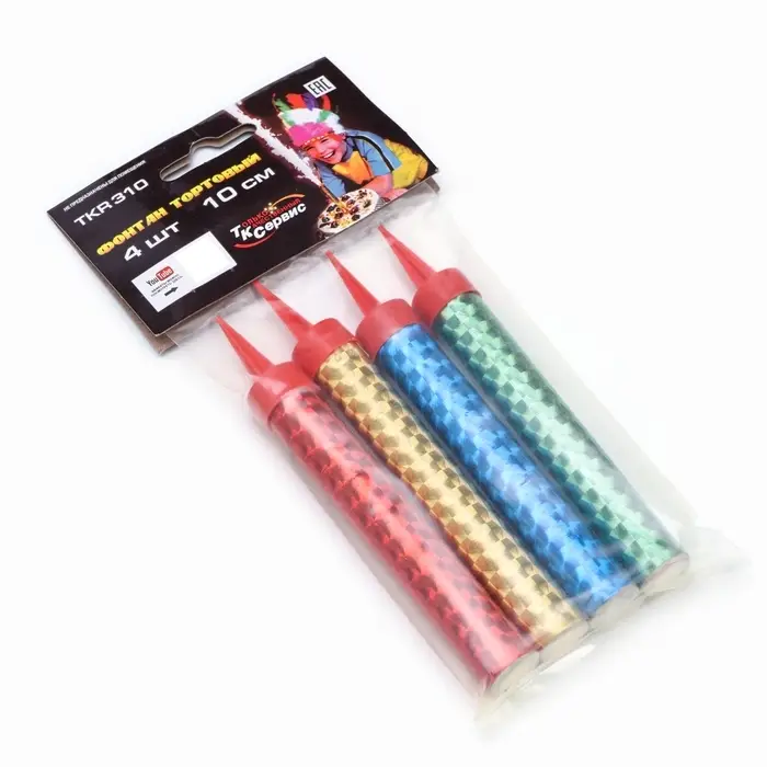 Свеча фонтан "Радужные искры", 4 шт, 10 см, цветное пламя 30 сек