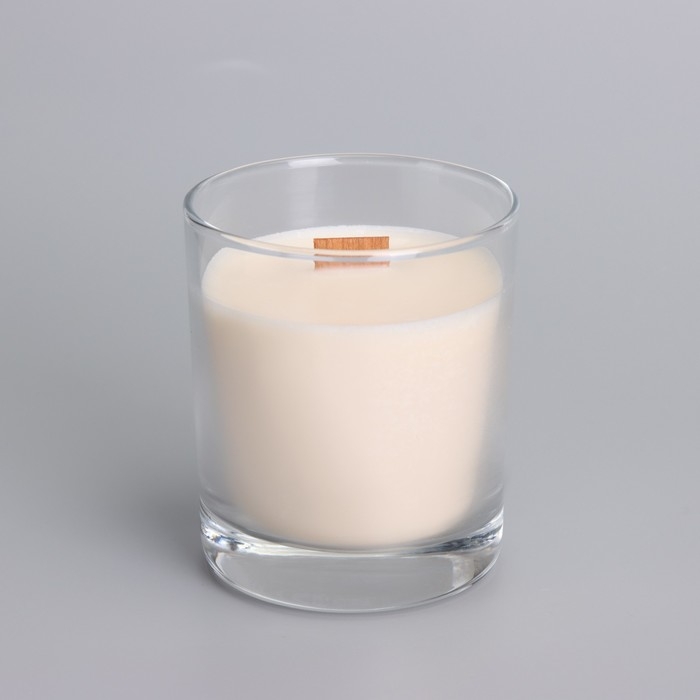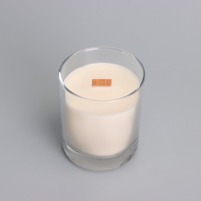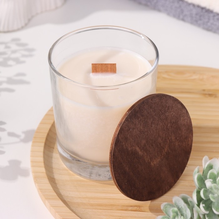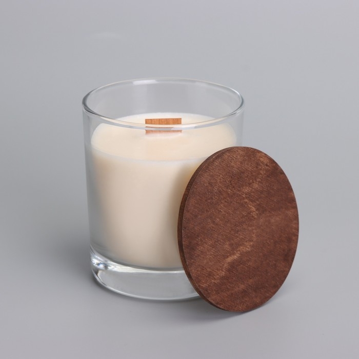 Свеча из соевого воска в стакане с деревянным фитилем и крышкой "Лесная малина", 110 гр