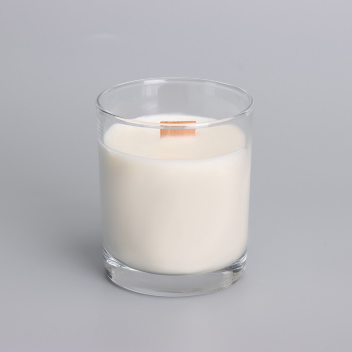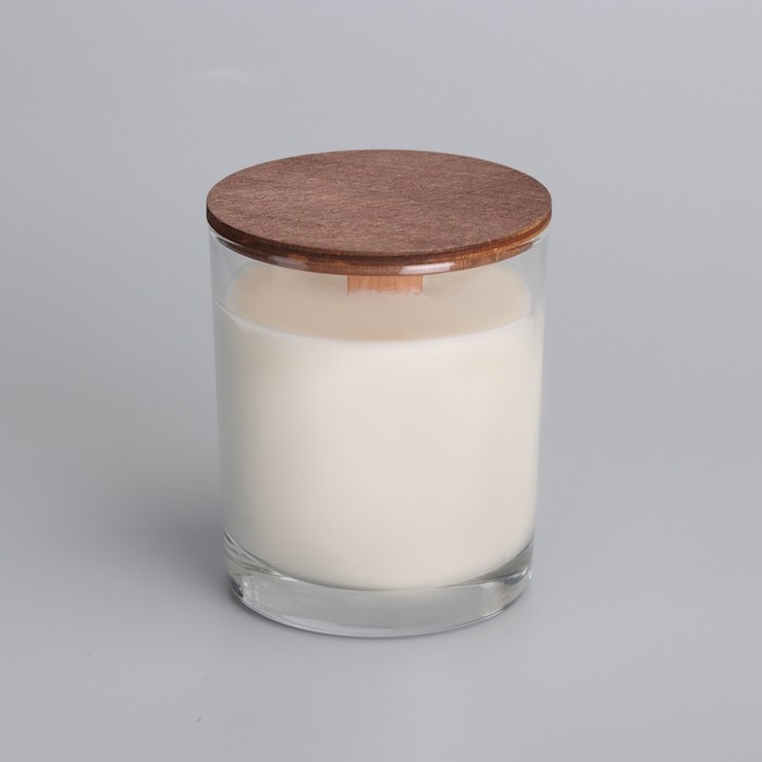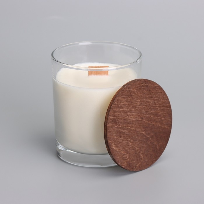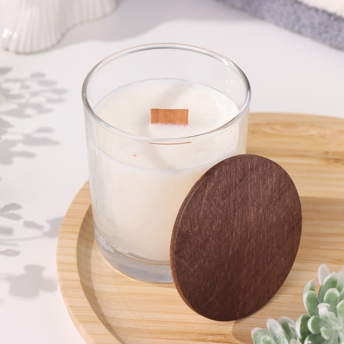 Свеча из соевого воска в стакане с деревянным фитилем и крышкой "Сладкий гранат", 110 гр