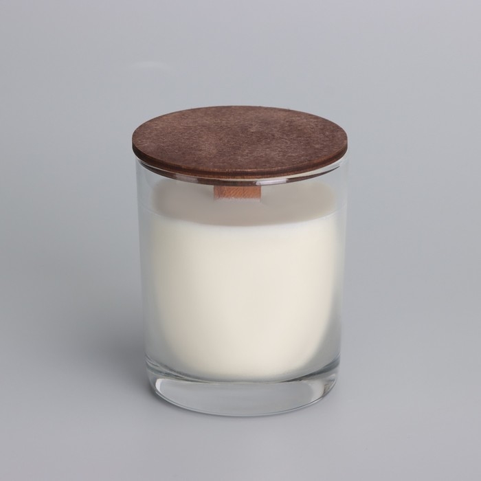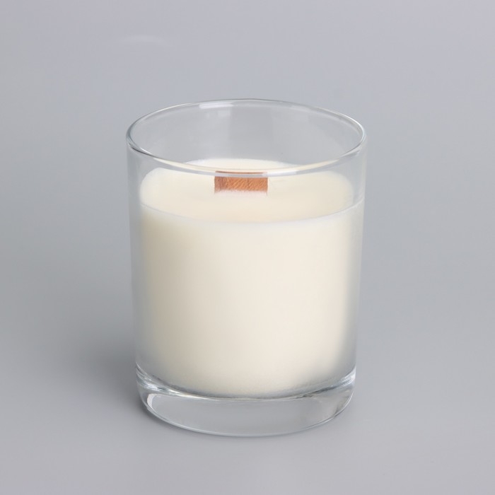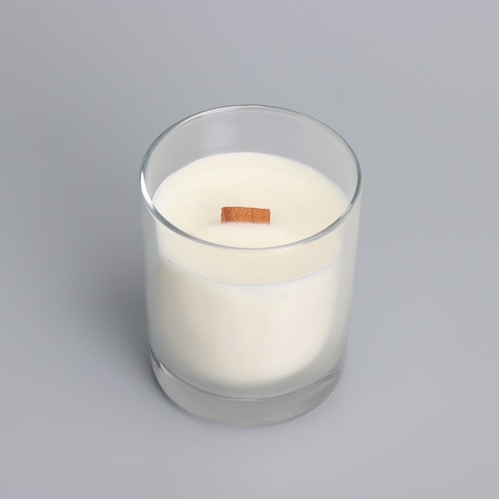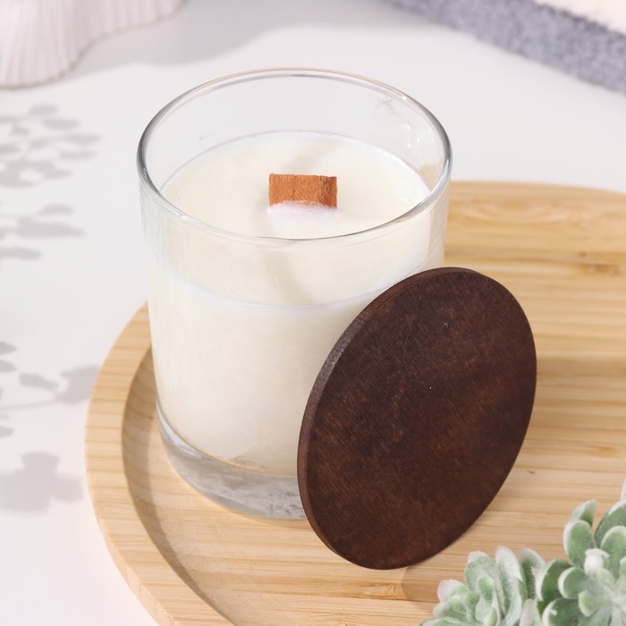 Свеча из соевого воска в стакане с деревянным фитилем и крышкой "Весенний ландыш", 110 гр